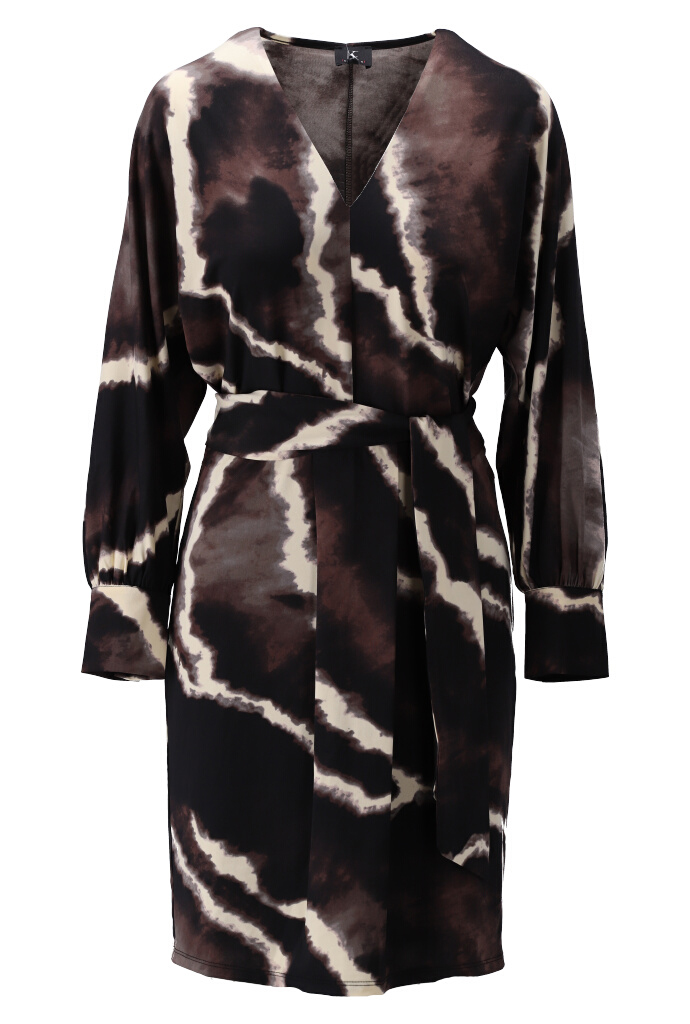 Ontdek de perfecte combinatie van stijl en comfort met de X387 Midi V-hals jurk van K-DESIGN. Deze prachtige jurk, uitgevoerd in een tijdloze zwarte kleur met een unieke tie dye print, belooft een opvallende toevoeging te zijn aan je garderobe. Geschikt voor elke gelegenheid, van een dag op kantoor tot een avondje uit.