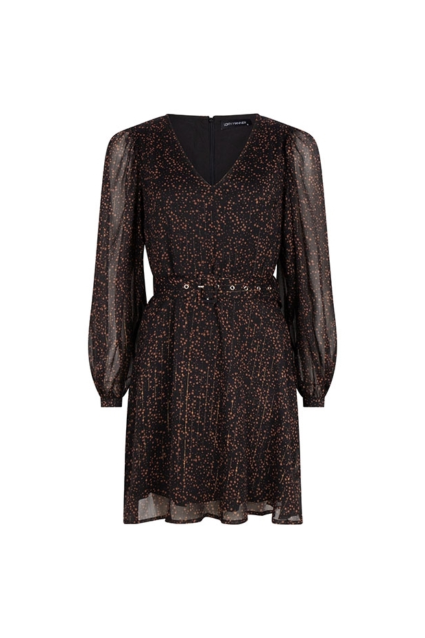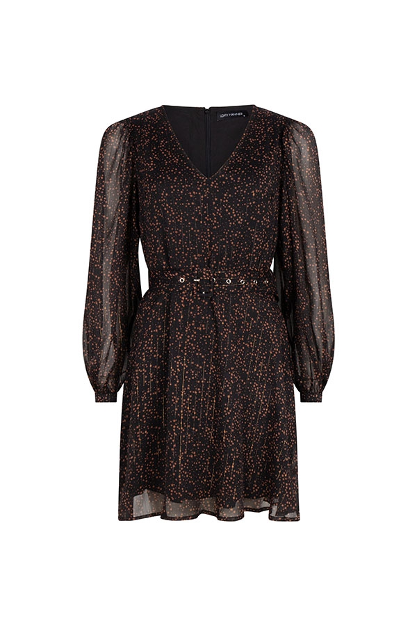 Ontdek de charme van de MX71 Dress Annemarie van Lofty Manner, een stijlvolle keuze voor elke dame die waarde hecht aan mode en kwaliteit. Deze prachtige jurk, uitgevoerd in een elegante zwarte kleur met een subtiele sterrenprint, is de perfecte aanvulling op je wintergarderobe. Laat je betoveren door het tijdloze design en de veelzijdigheid van deze jurk, waarmee je zowel overdag als 's avonds schittert.