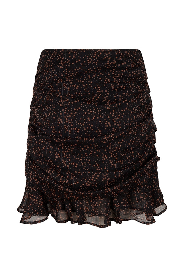 Ontdek de charme van de MX88 Skirt Alison van Lofty Manner, een stijlvolle toevoeging aan je wintergarderobe. Deze prachtige rok, uitgevoerd in een diepe zwarte kleur met een subtiele sterrenprint, belooft een veelzijdig stuk te zijn dat je zowel overdag als 's avonds kunt dragen. Perfect voor dames die waarde hechten aan zowel comfort als stijl.