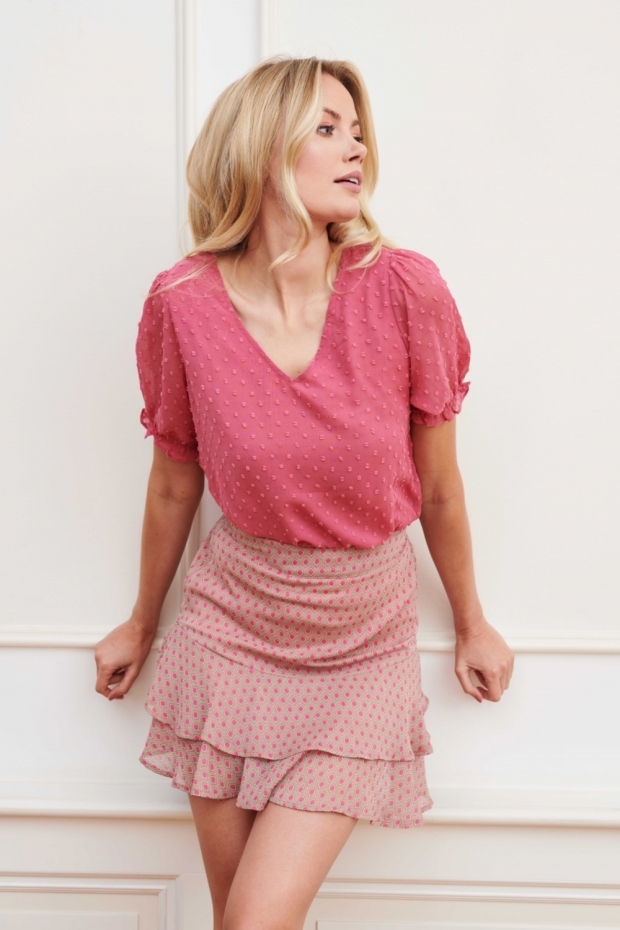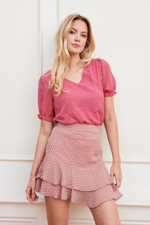 Ontdek de charme van de Skirt Karmijn van Lofty Manner, een must-have voor elke garderobe deze zomer. Met zijn opvallende roze kleur en unieke 'plum lemons' print, is deze rok een echte blikvanger die je outfit een frisse en levendige uitstraling geeft. Perfect voor zowel een casual dagje uit als een avondje uit.