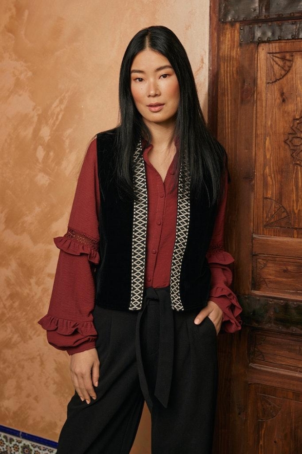Ontdek de charme van de Blouse Blair van Lofty Manner, een stijlvolle toevoeging aan je garderobe die perfect is voor elke gelegenheid. Uitgevoerd in een opvallende cherry red kleur, biedt deze blouse een combinatie van comfort en elegantie die je look naar een hoger niveau tilt.