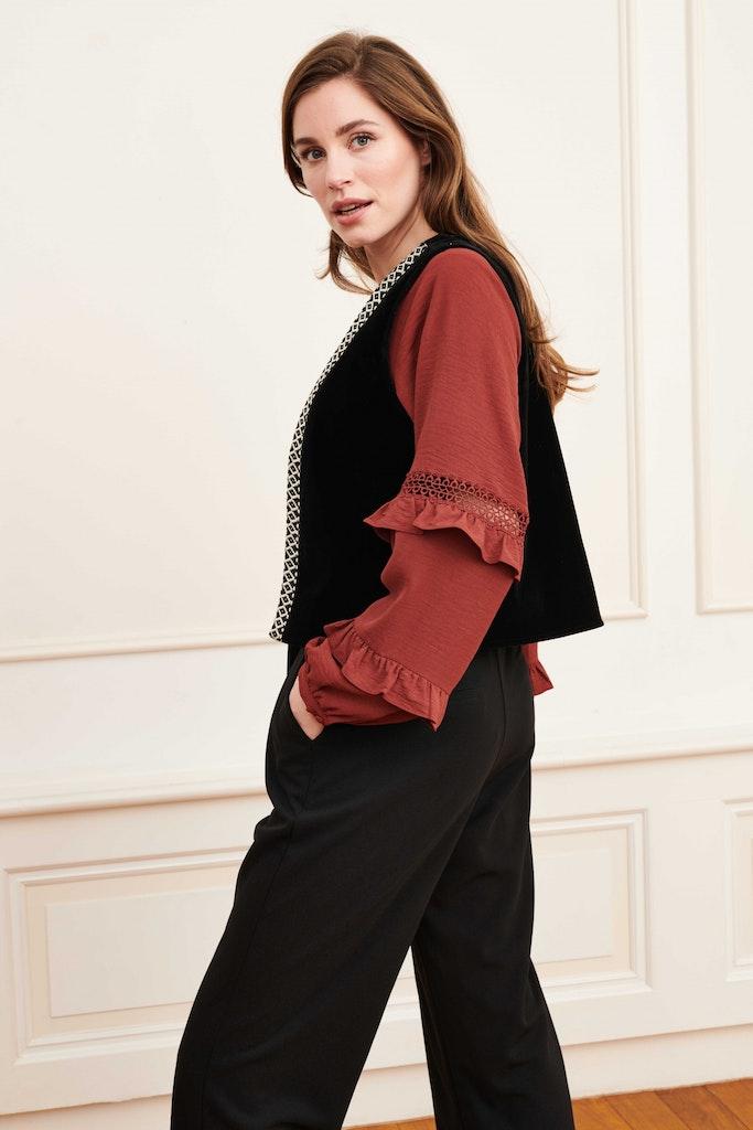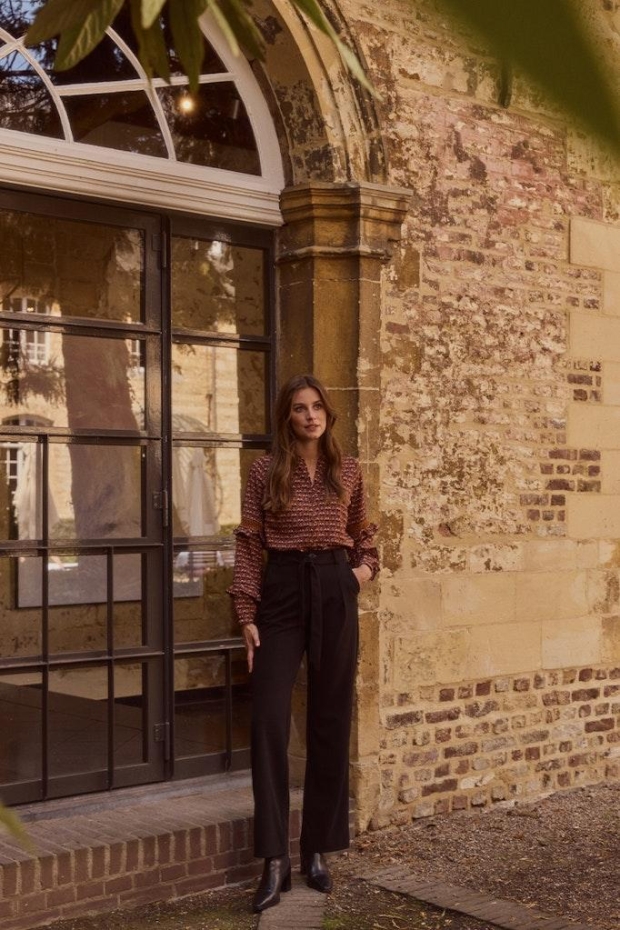 Broek Malani is een wide leg trouser met afneembare riem in de taille en plooien aan de voorkant van de broek. De high waisted broek heeft steekzakken aan de voorkant en nepzakken aan de achterkant. De broek heeft een normale knoop aan de buitenkant en onzichtbare knoop aan de bovenkant voor optimaal draagcomfort. De zwarte broek bevat stretch.