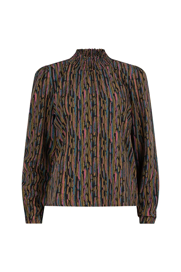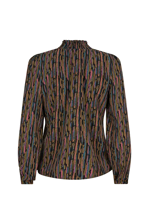 Ontdek de veelzijdigheid en stijl van de OJ05.1 Blouse Sherina van Lofty Manner. Deze prachtige blouse, perfect voor de wintermaanden, is een ware toevoeging aan elke garderobe. Met zijn unieke 'Multi Colour' design geïnspireerd op een 'abstract landschap', is het een echte blikvanger die je look onmiddellijk naar een hoger niveau tilt.