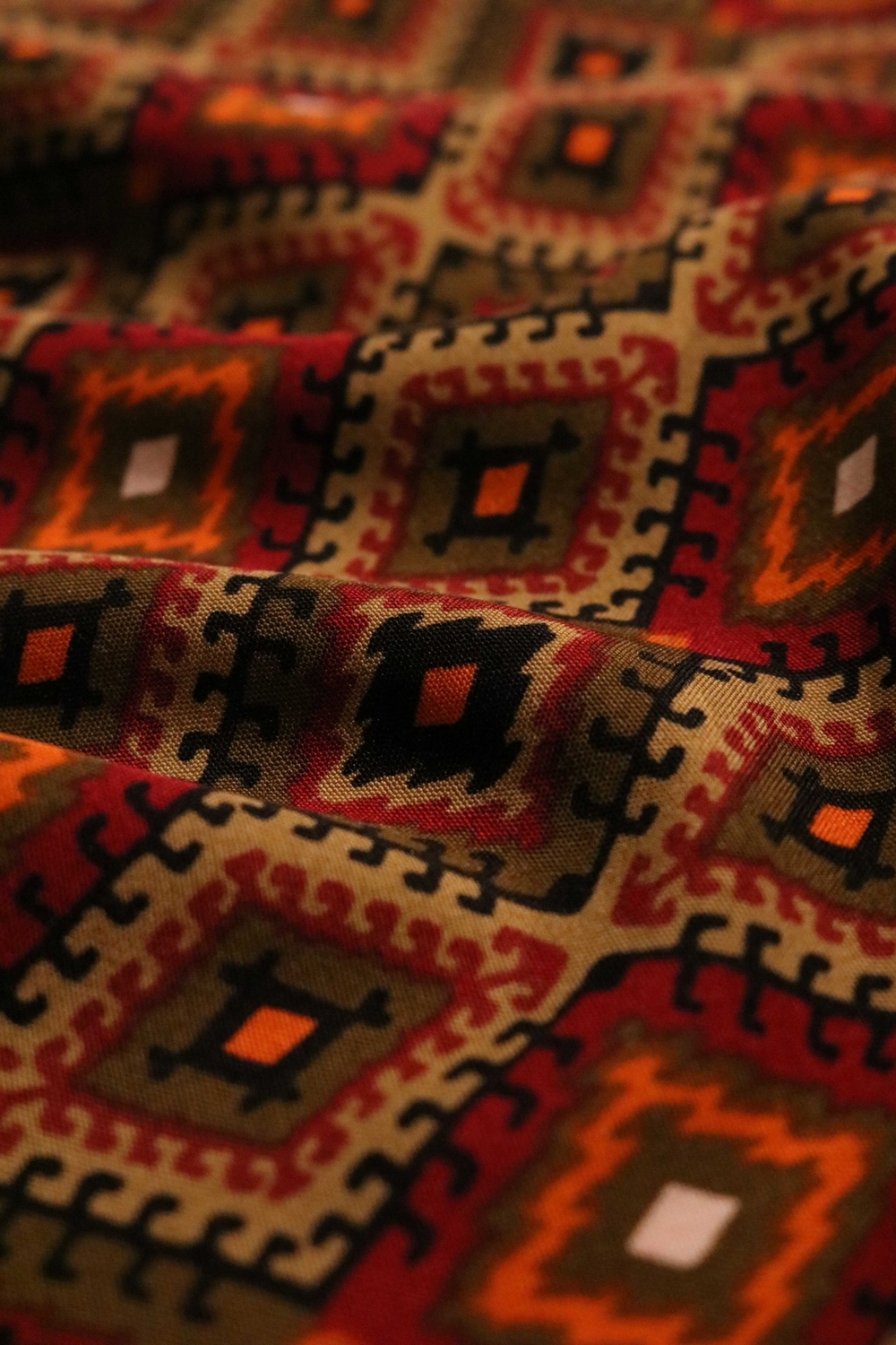 - Prachtige bruine kleur verrijkt met een groene ikat print voor een opvallende look.