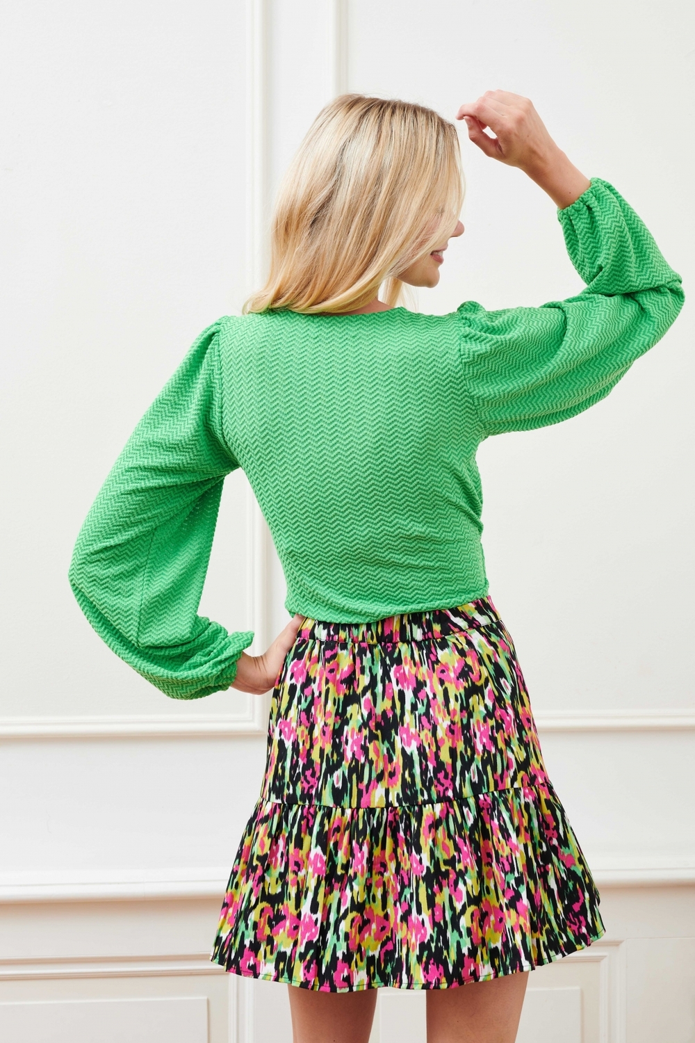 Ontdek de charme van de Top Delia van Lofty Manner, een must-have voor elke garderobe deze zomer. Met zijn frisse groene kleur en lange mouwen is dit T-shirt de perfecte combinatie van comfort en stijl. Ideaal voor zowel een casual dagje uit als een avondje uit.