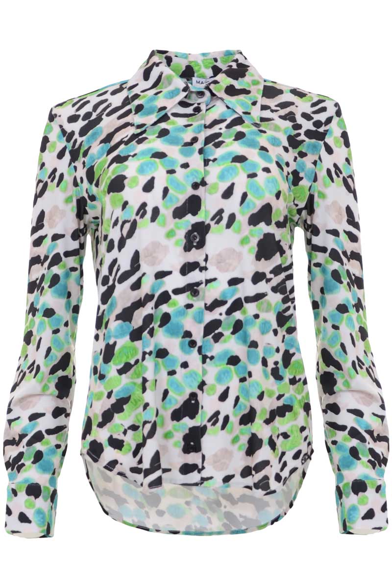 Maak kennis met de stijlvolle en zomerse charme van de MAICAZZ GARBIXL blouse in de betoverende kleur Paintart smaragd. Deze blouse is een must-have voor elke garderobe van de modebewuste vrouw, perfect voor zowel een casual als een chique look.