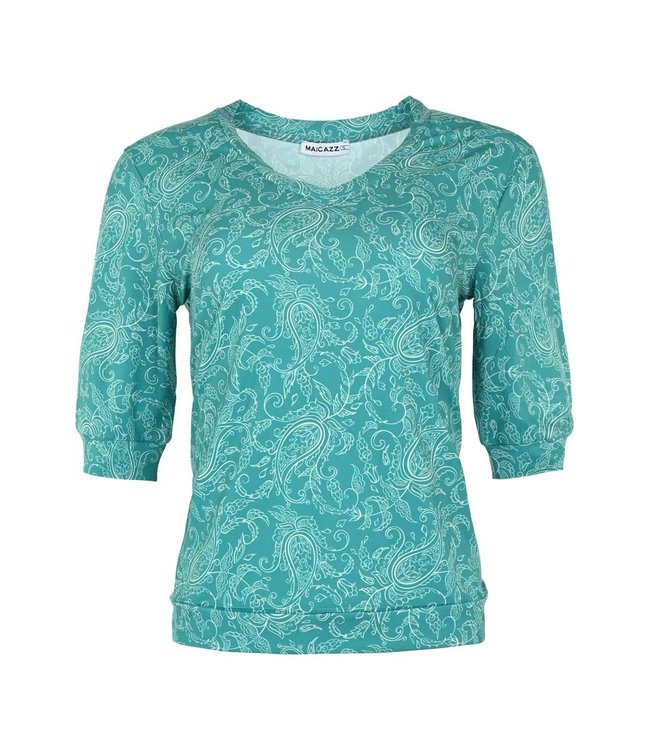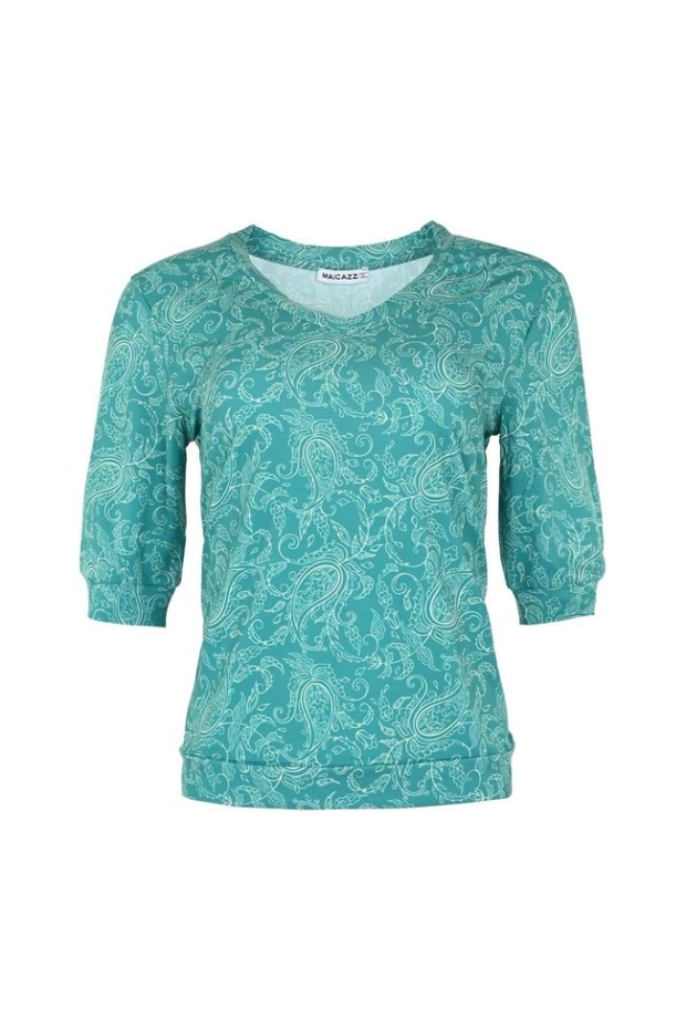 Verfris je garderobe met de levendige BIBI top van MAICAZZ, perfect voor de zomer. Deze top in een oogstrelende groene kleur, versierd met een paisley patroon, is jouw go-to item voor zowel casual als chique gelegenheden. Met zijn korte mouwen en comfortabele pasvorm is de BIBI top een stijlvolle aanvulling op elke outfit.