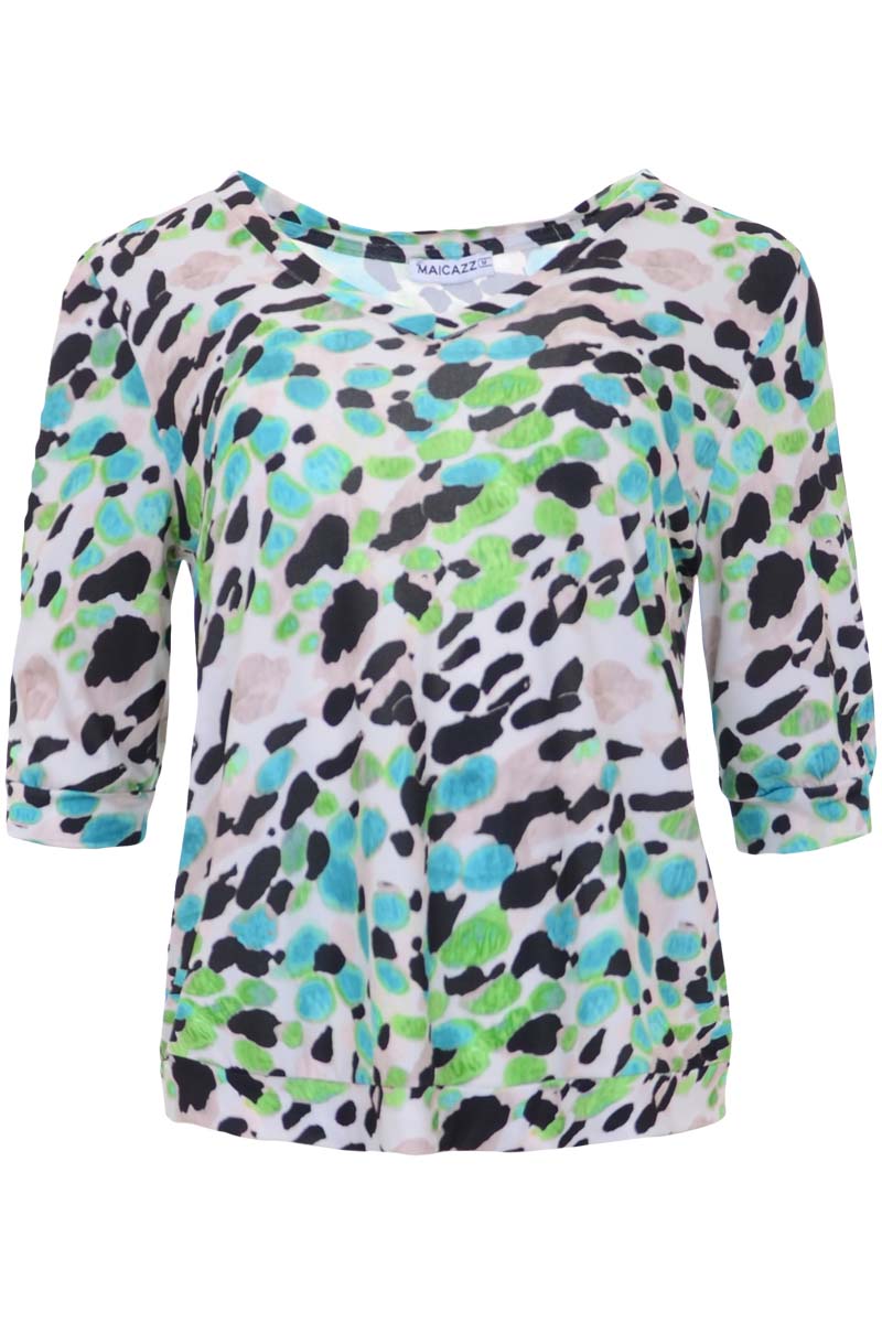 Maak kennis met de elegante BIBI-top van MAICAZZ, een must-have voor elke vrouw die waarde hecht aan stijl en comfort. Deze top, uitgevoerd in een prachtige donkergroene tint, genaamd 'Paintart smaragd', is de perfecte aanvulling op jouw zomergarderobe. Het T-shirt met korte mouwen combineert moeiteloos mode met functionaliteit, waardoor het een veelzijdig stuk is dat je zowel overdag als 's avonds kunt dragen.
