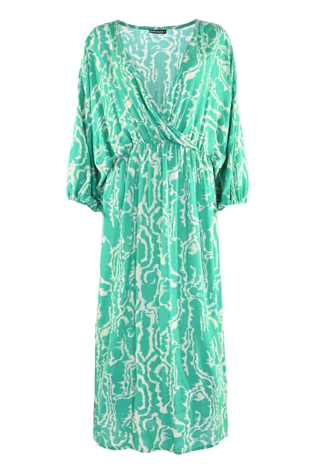 Ontdek de perfecte aanvulling op jouw zomergarderobe met de FRANCESCA-Jurk van MAICAZZ, een stijlvolle keuze voor elke gelegenheid. Deze jurk, uitgevoerd in een levendige groene kleur met de unieke 'Apple Ikat' print, belooft niet alleen een modieuze uitstraling maar ook een comfortabele pasvorm voor de warmere dagen.