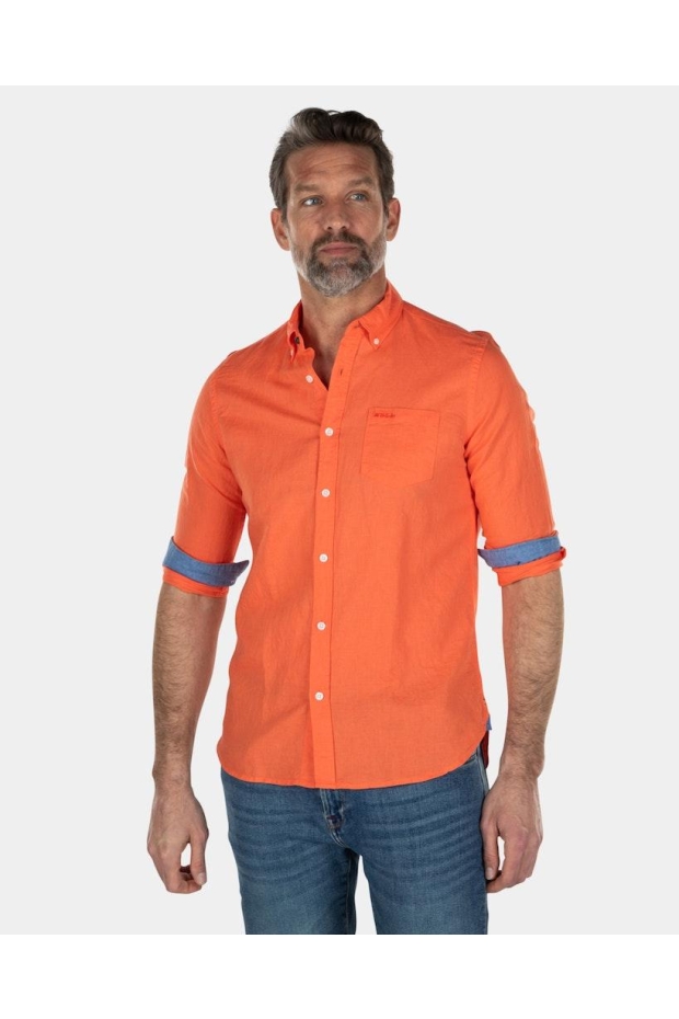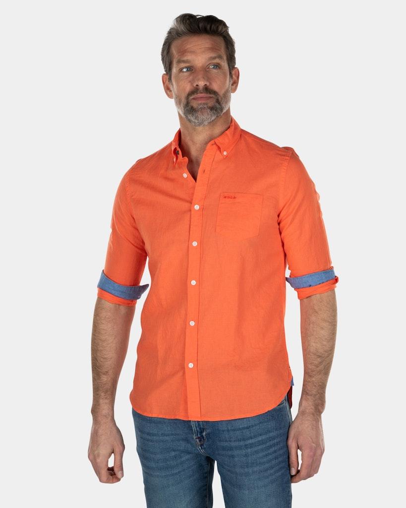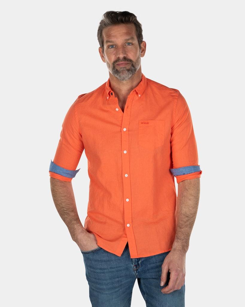 Laat je stijl spreken met het oranje overhemd van NEW ZEALAND AUCKLAND. Perfect voor de moderne man die waarde hecht aan kwaliteit en een opvallende look. Dit overhemd, ideaal voor de zomer, combineert comfort met een vleugje avontuur.
