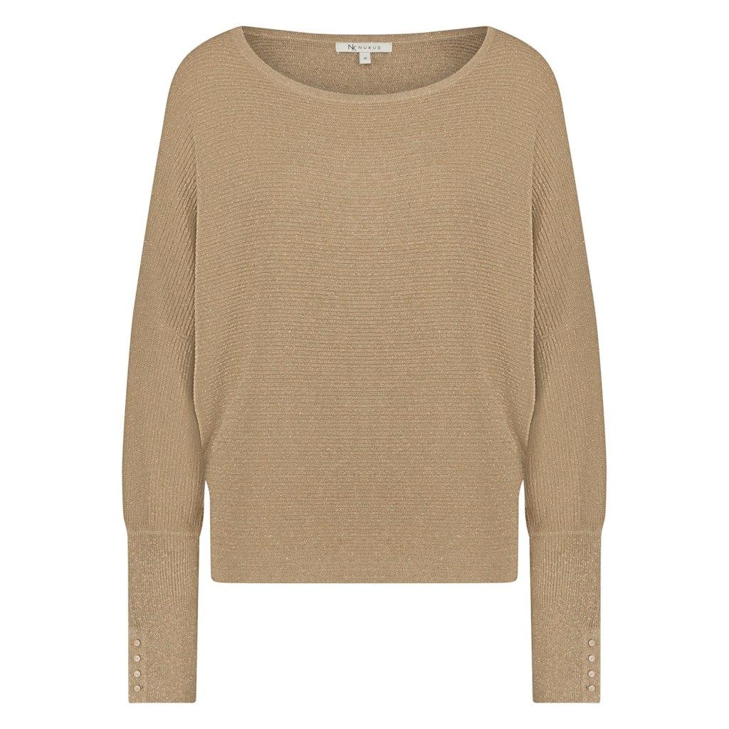 Ontdek de charme van de NUKUS Batwing Pullover in stijlvol camel. Deze trui, perfect voor de modebewuste vrouw, combineert comfort met een vleugje glamour dankzij de subtiele lurex afwerking. Een must-have voor je garderobe die nooit uit de mode raakt.