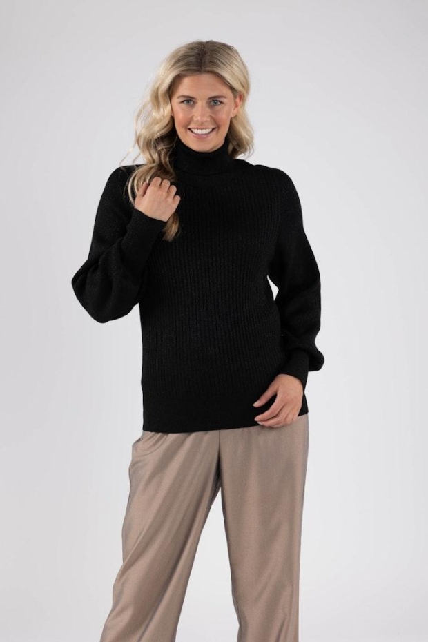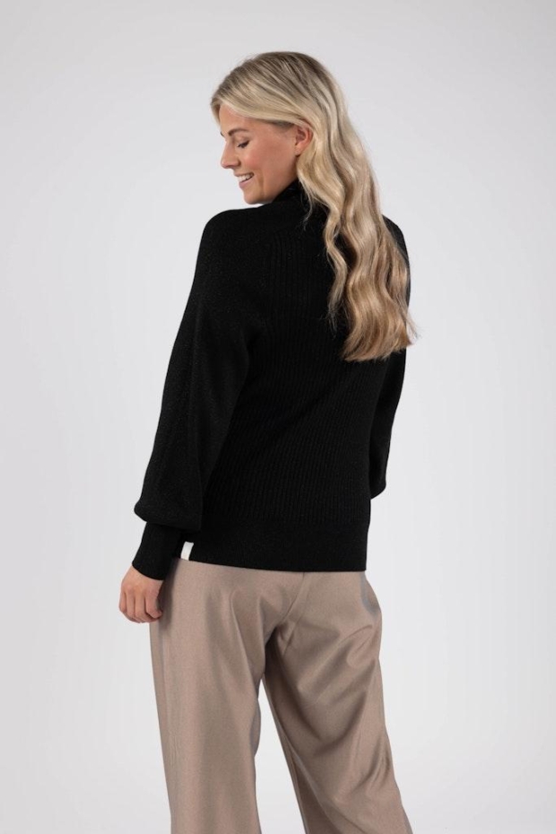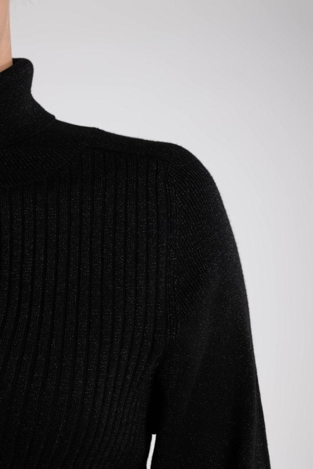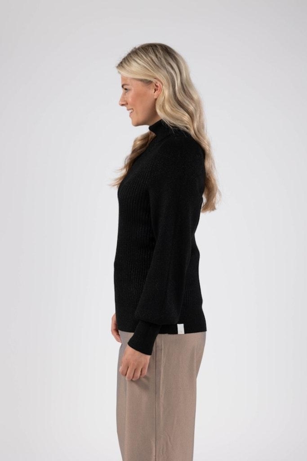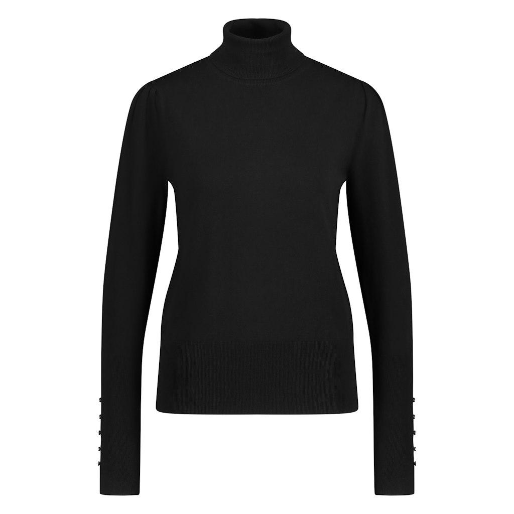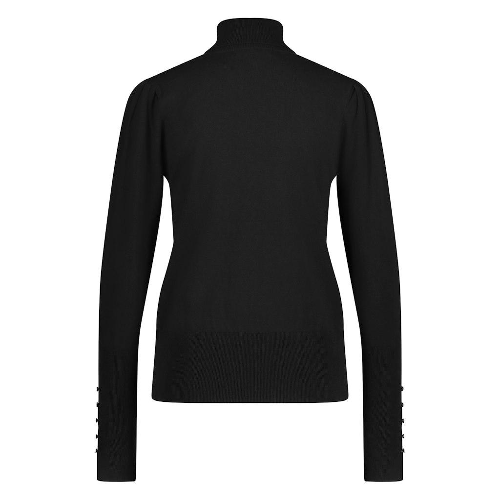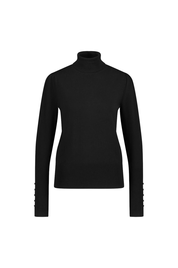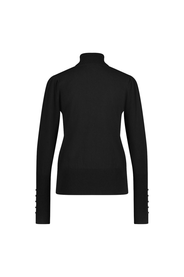 De Silvi pullover heeft een turtleneck en is bij de mouwen afgezet met kleine knoopjes.