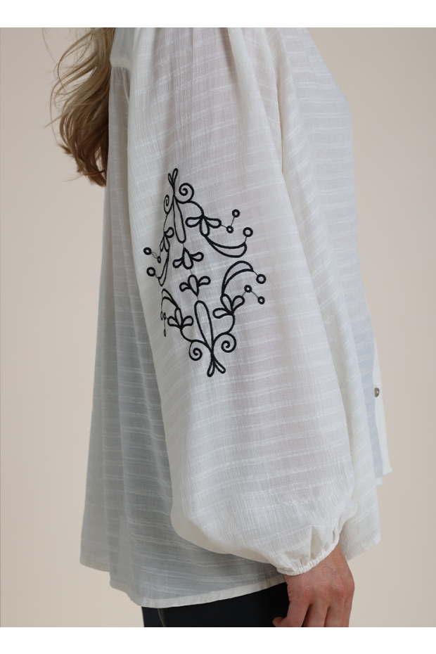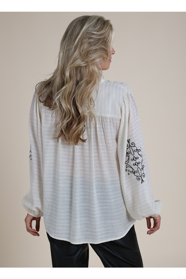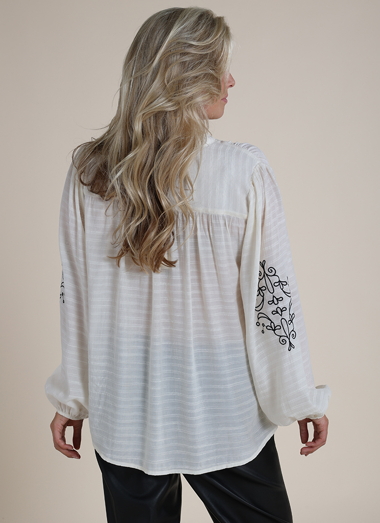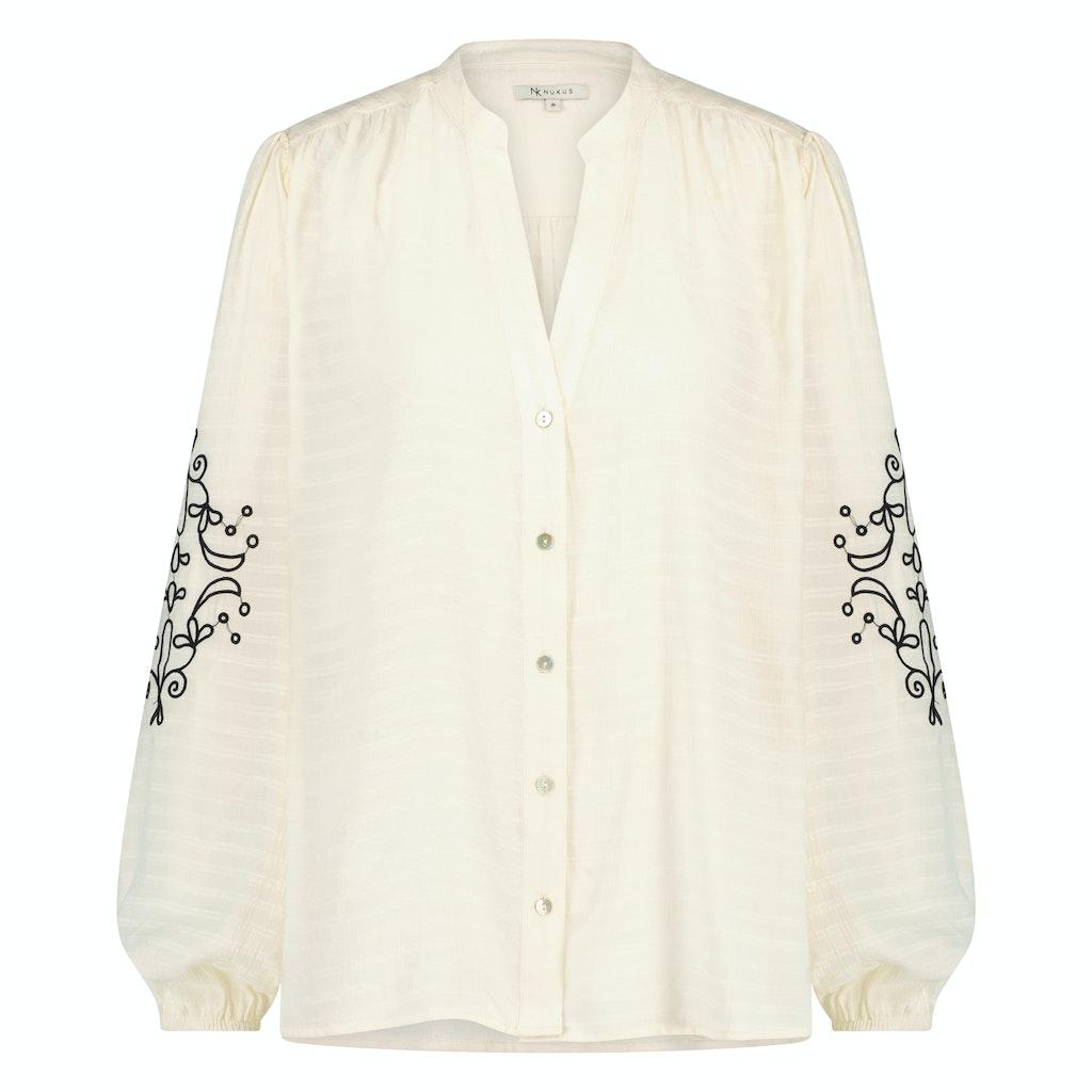 Ontdek de stijlvolle charme van de Daan Blouse Embroidery van NUKUS, perfect voor de modebewuste vrouw die waarde hecht aan kwaliteit en elegantie. Deze prachtige blouse in de kleur off white is een veelzijdige toevoeging aan je garderobe, ideaal voor zowel casual als formele gelegenheden in de wintermaanden.
