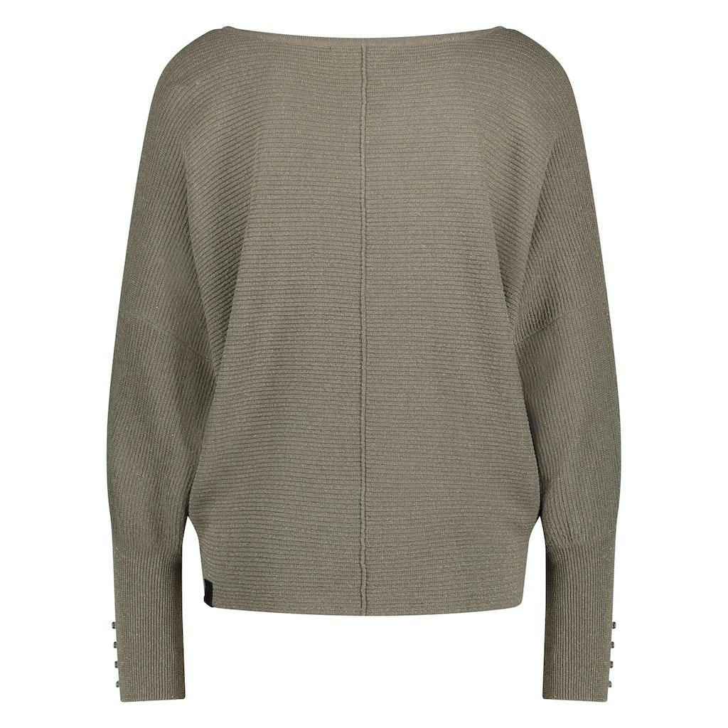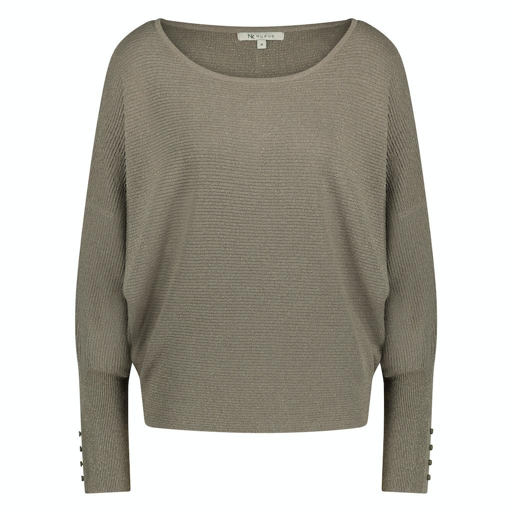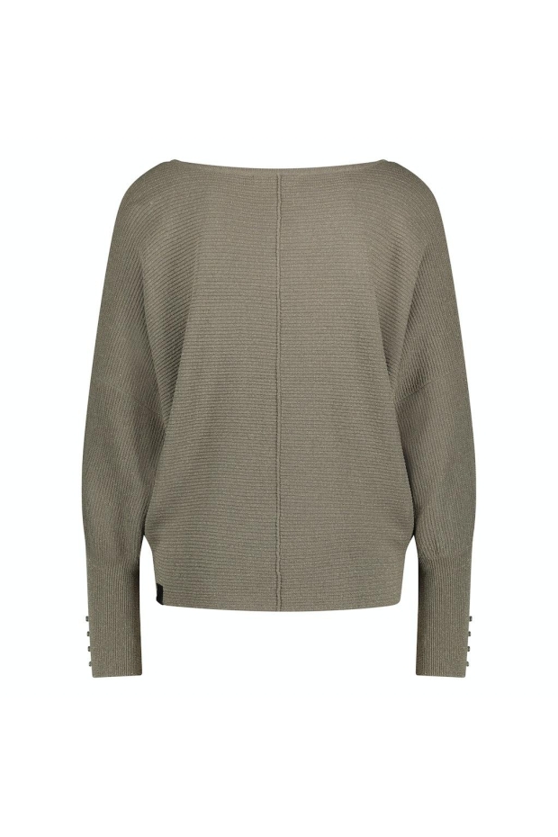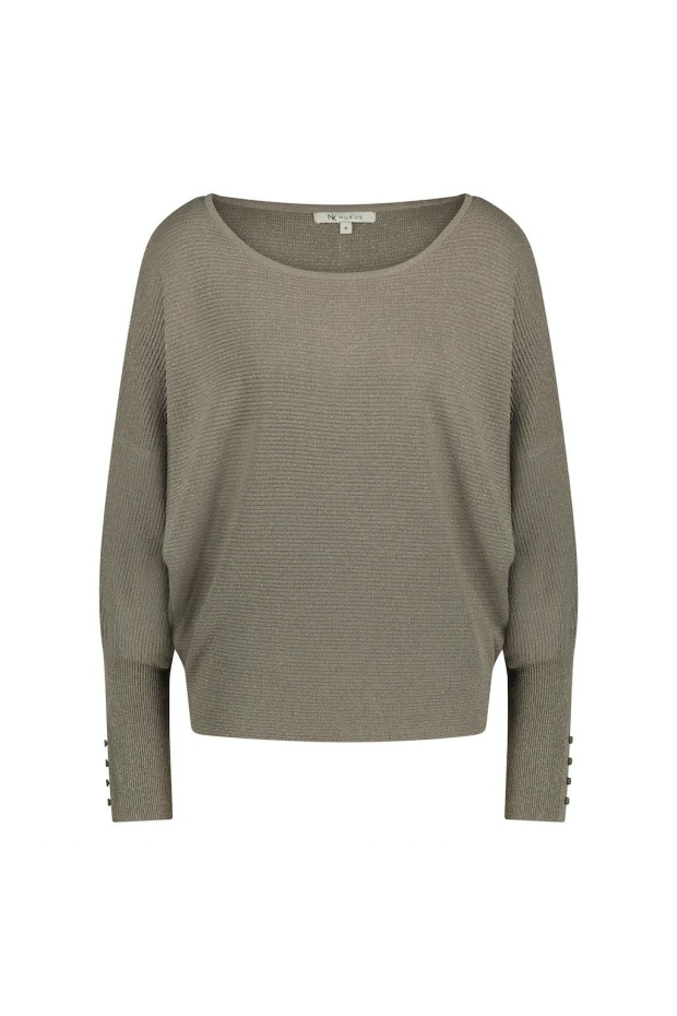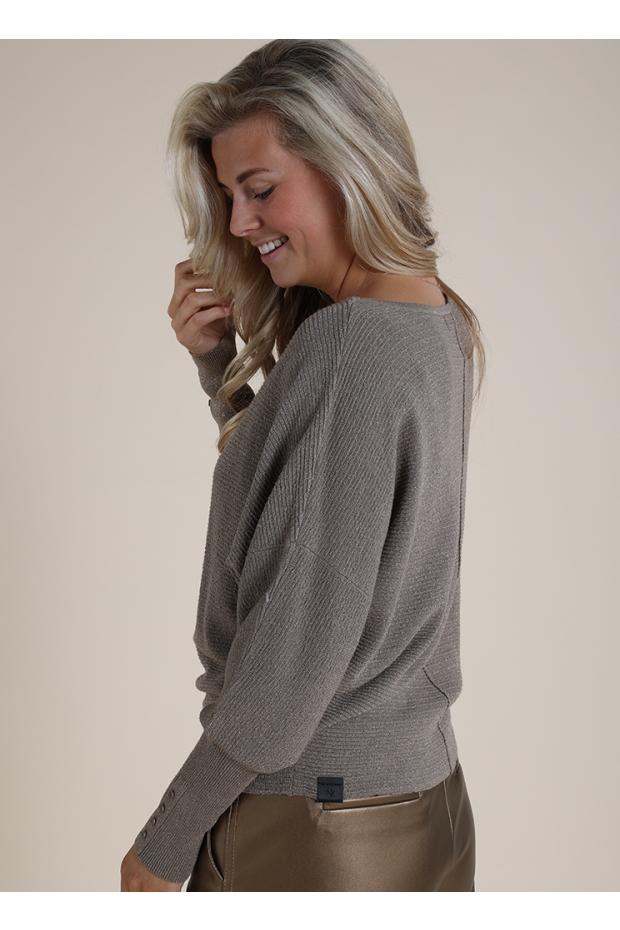 De Mila trui is ontworpen met een grote ronde hals, lange mouwen en een rib structuur. De trui is afgewerkt met lurex draad wat zorgt voor een mooie glitter in de trui. Aan het uiteinde van de mouwen zitten kleine knopen.