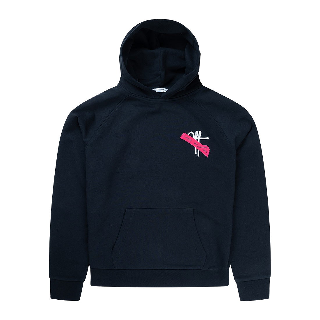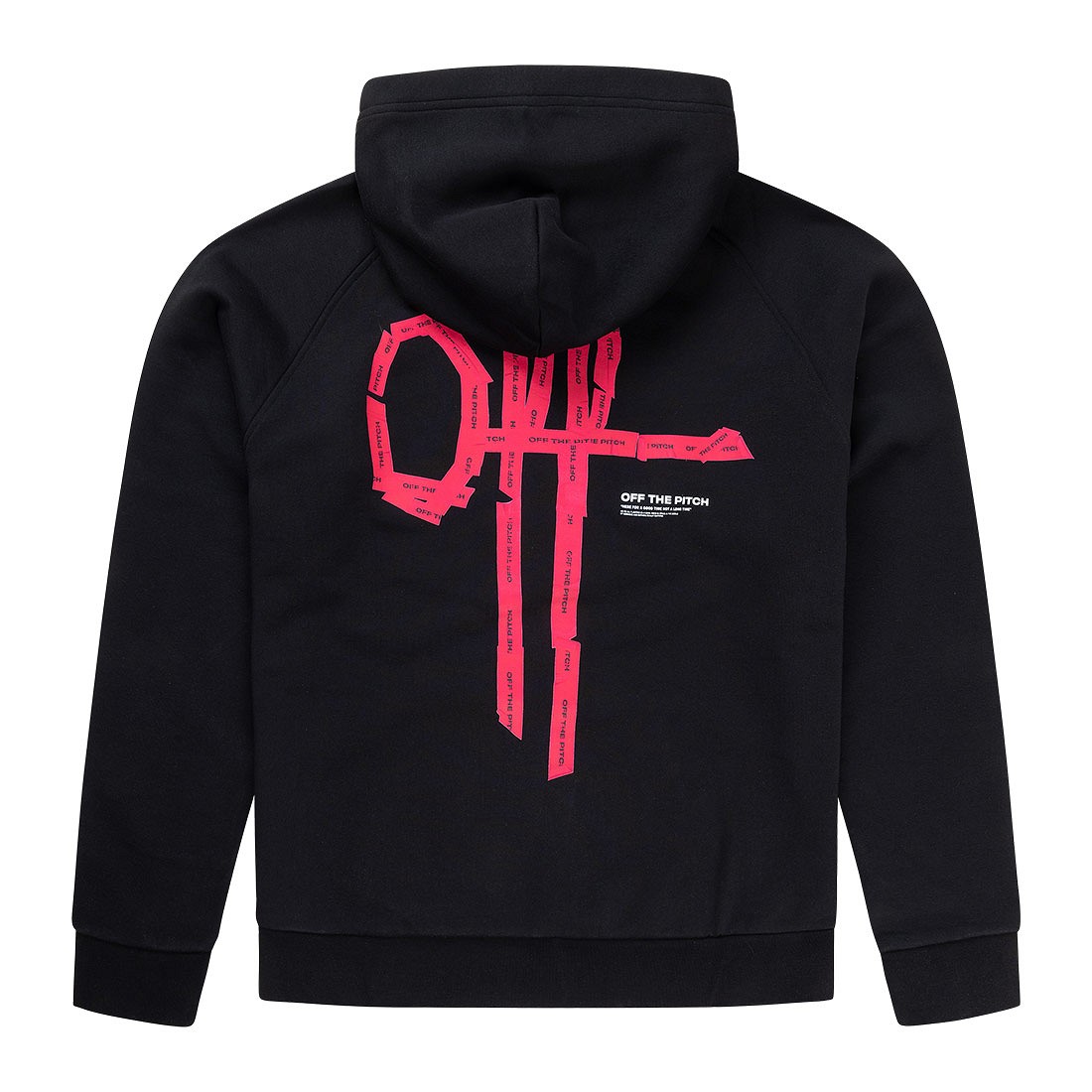 Off The Pitch Tape Off Hood in het zwart. Maak je klaar om grenzen te verleggen en je eigen stijlregels te bepalen met deze oversized hoodie die de essentie van de streetwear-esthetiek uitstraalt. Het bedrukte logo op de borst voegt een edgy touch toe, waardoor je streetstyle-game meteen naar een hoger niveau wordt getild. Maar de echte showstopper is het boeiende bedrukte tape-artwork op de achterkant. Onderscheid u van de massa en maak een gedurfd streetwear statement. Gemaakt van een premium katoenmix.