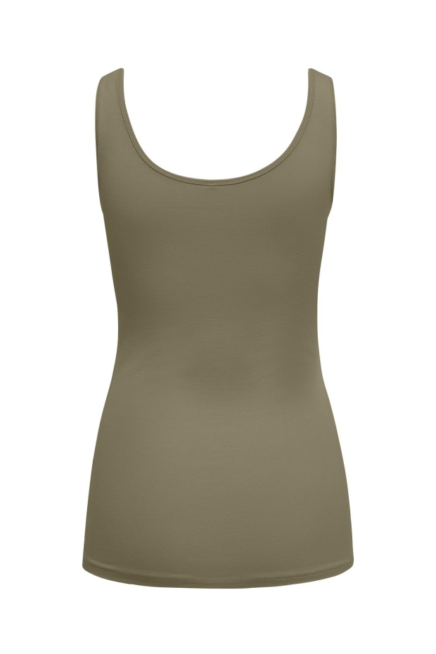 Maak kennis met de perfecte aanvulling op jouw zomergarderobe: de ONLLIVE LOVE S/L TANK TOP NOOS van ONLY in de kleur olijf. Deze top, ideaal voor de warmere dagen, combineert comfort met een stijlvolle uitstraling.