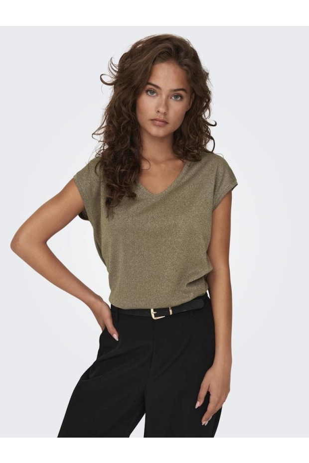 Only ONLSILVERY S/S V NECK LUREX TOP JRS NOOS Falcon TONE IN TONE LUREX