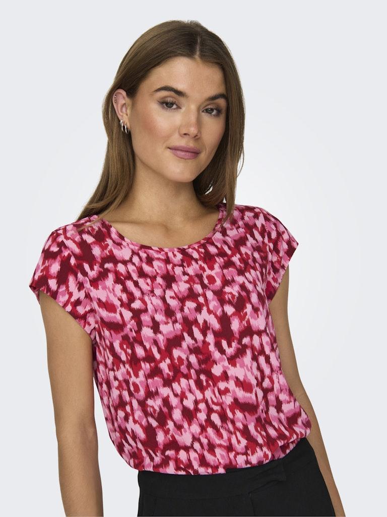 Ontdek de perfecte aanvulling op jouw zomergarderobe met de ONLVIC S/S AOP TOP NOOS PTM van ONLY in het oogstrelende Lipstick Red City leo. Deze top combineert moeiteloos stijl met comfort, waardoor het een must-have is voor elke modebewuste vrouw.