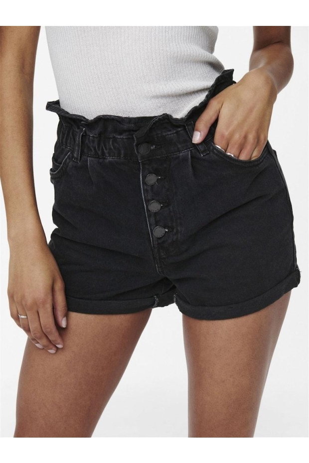 Ontdek de perfecte aanvulling op jouw zomerse garderobe met de ONLY ONLCUBA PAPERBAG DNM SHORTS NOOS in stijlvol zwart denim. Deze trendy dameskorte broek combineert comfort met een modieuze uitstraling, ideaal voor warme dagen of een casual uitje.