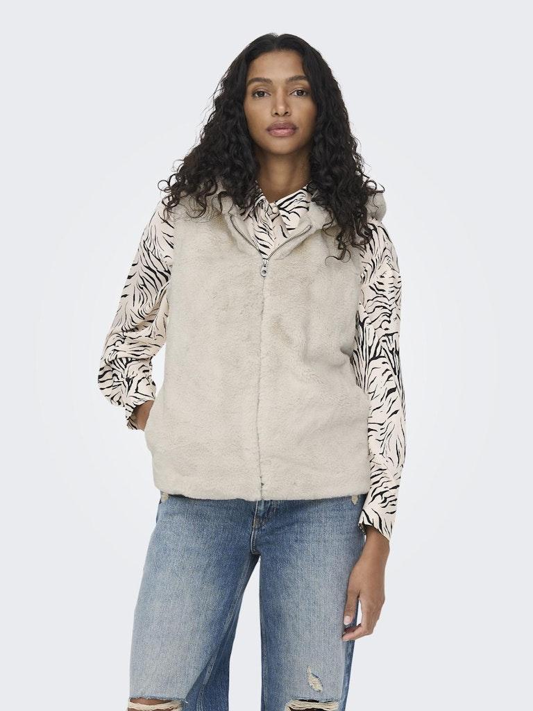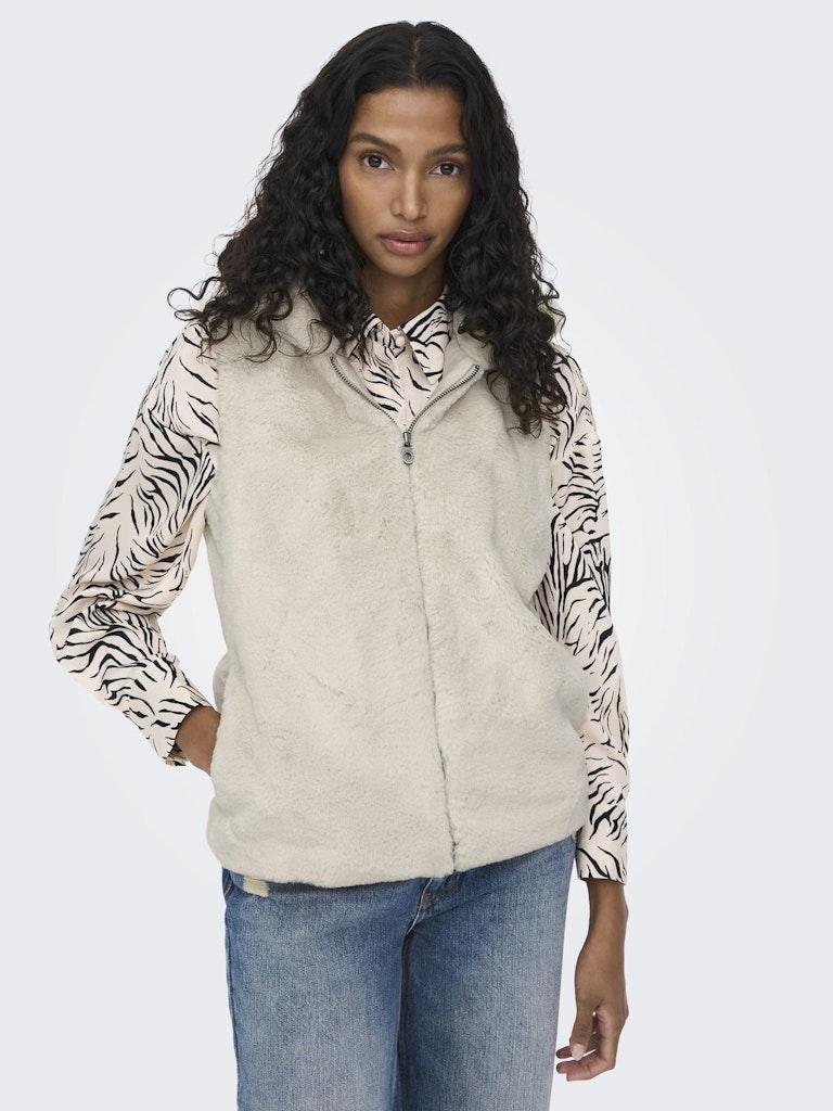 Ontdek de perfecte aanvulling op jouw wintergarderobe met de ONLMALOU FAUX FUR WAISTCOAT van ONLY. Deze stijlvolle bodywarmer in licht beige, ook bekend als Pumice Stone, biedt niet alleen warmte tijdens de koudere dagen, maar zorgt ook voor een modieuze uitstraling. Geschikt voor elke dame die waarde hecht aan comfort en stijl.