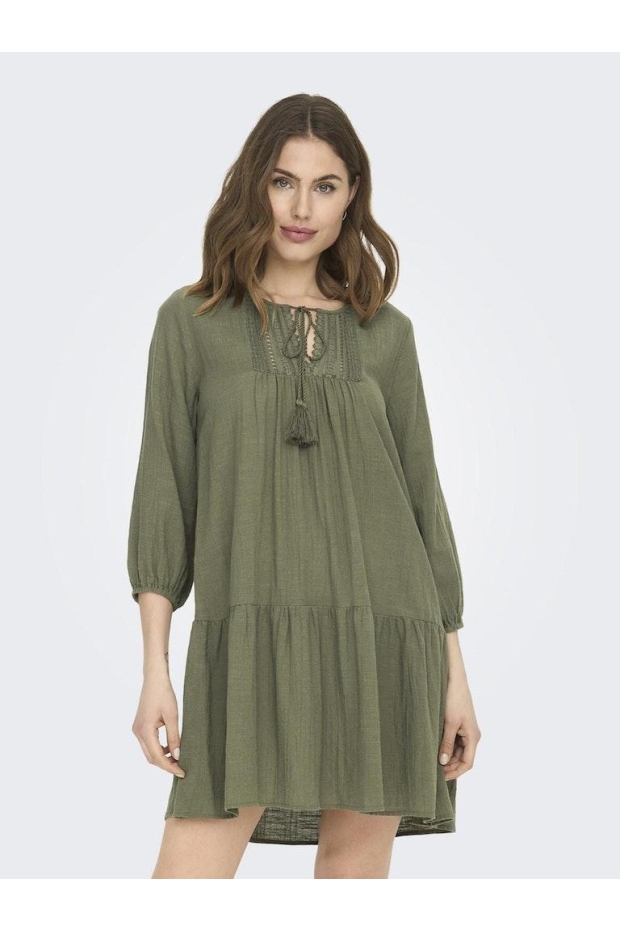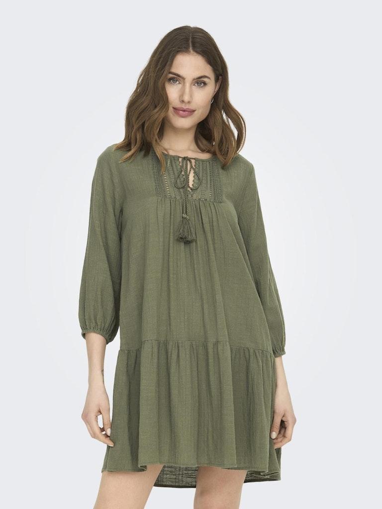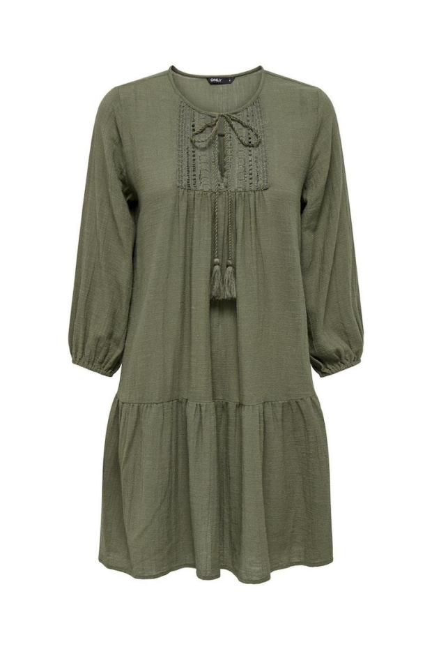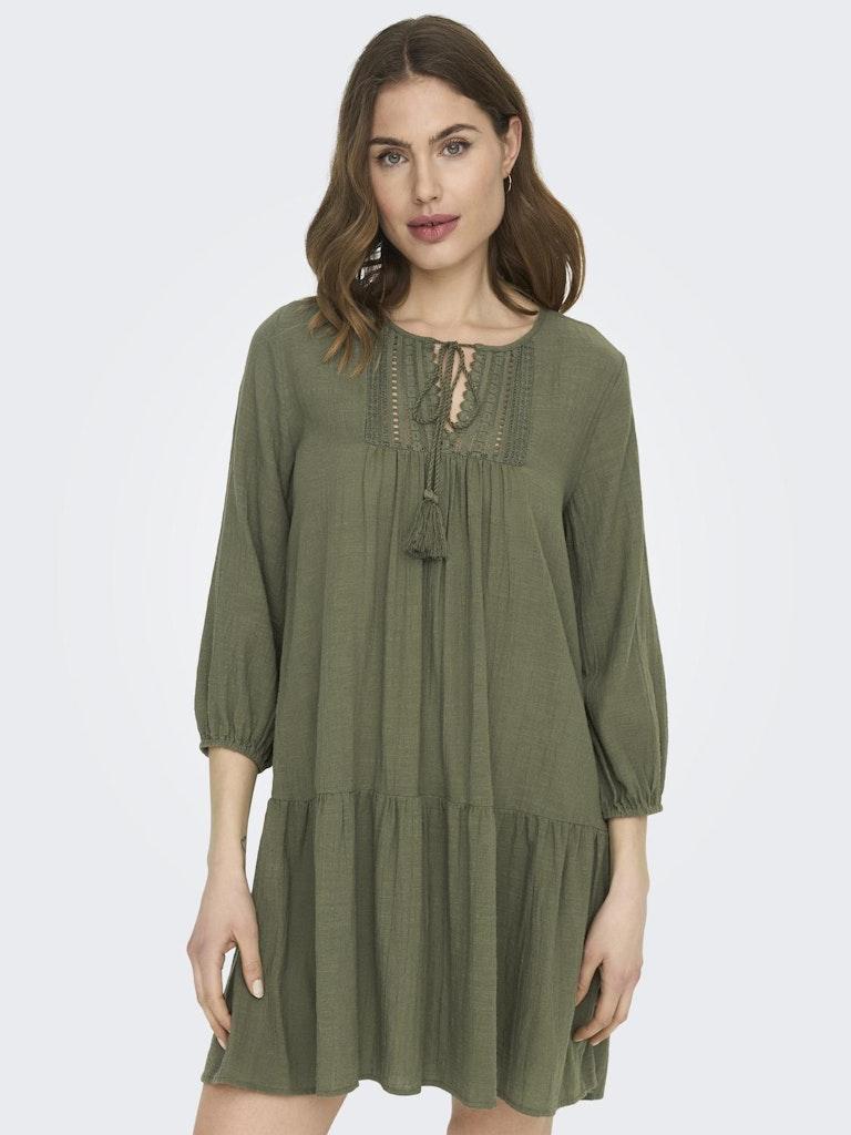 Ontdek de perfecte aanvulling op jouw zomergarderobe met de elegante ONLY ONLVINNIE LIFE 3/4 LACE TUNIC WVN NOOS in de kleur kalamata. Deze zomerjurk, ontworpen voor de moderne vrouw, combineert comfort met een vleugje elegantie, waardoor het de ideale keuze is voor zowel dagelijkse activiteiten als speciale gelegenheden.