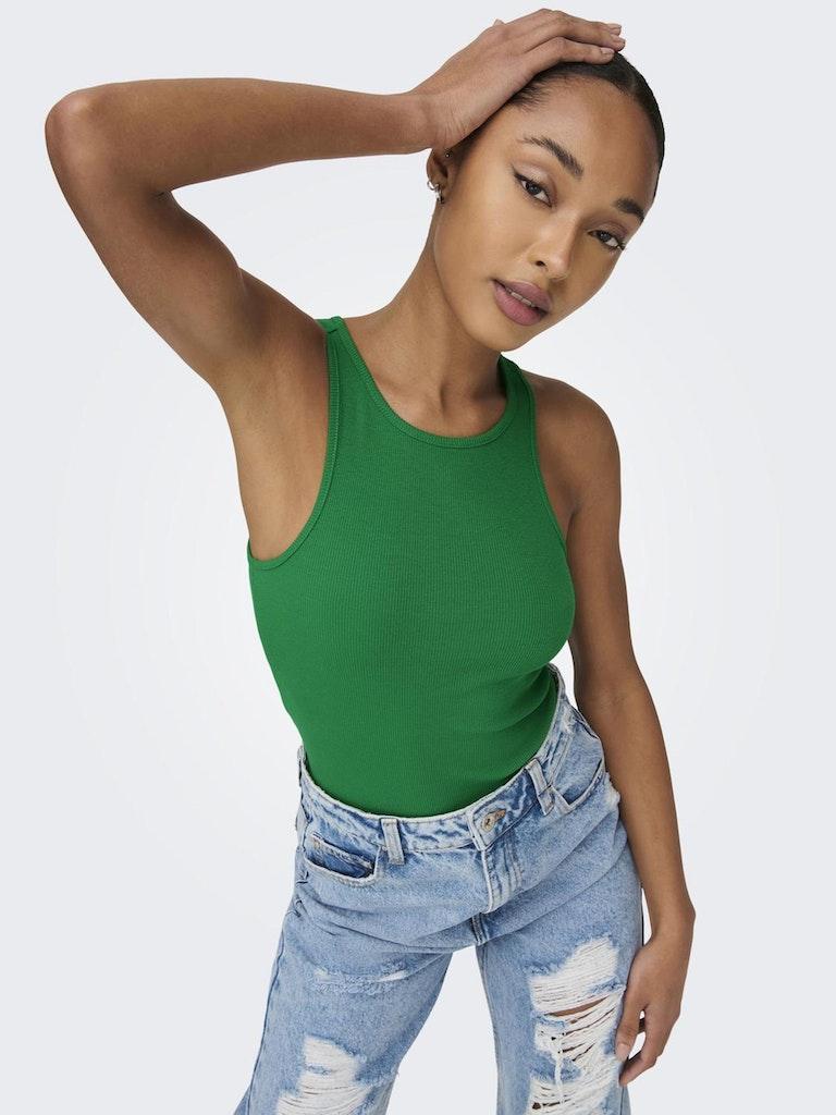 Maak kennis met de perfecte zomerse aanvulling op jouw garderobe: de ONLKENYA RIB TANK TOP JRS NOOS van ONLY in de frisse kleur Jolly Green. Deze top, ideaal voor de warme dagen, combineert moeiteloos stijl met comfort.