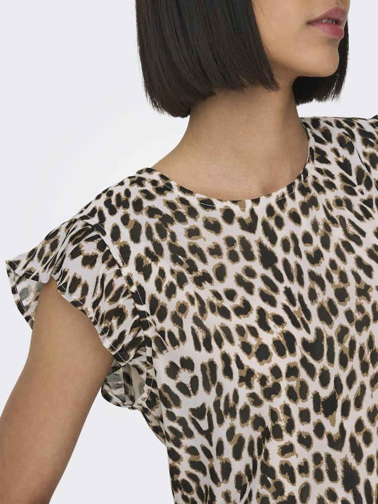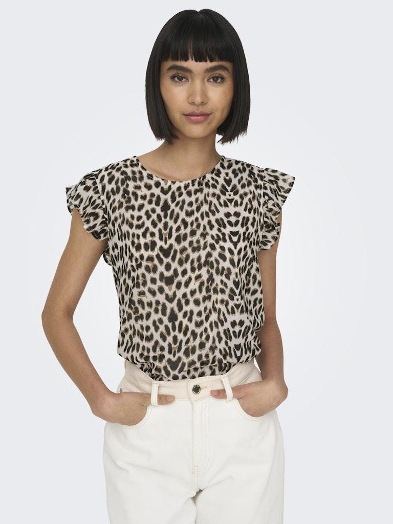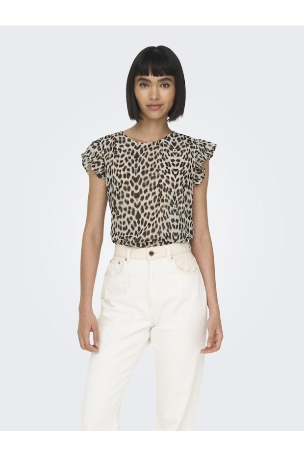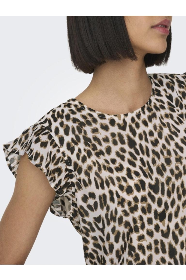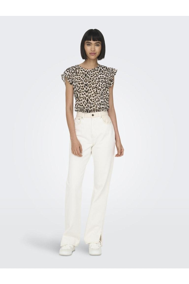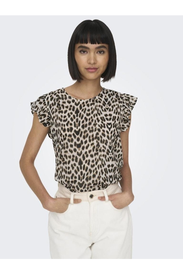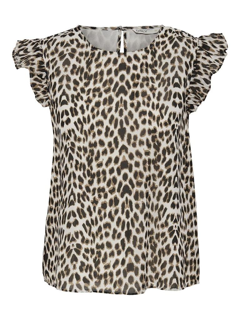 Ontdek de perfecte aanvulling op jouw zomergarderobe met de stijlvolle ONLANN STAR S/L FRILL TOP van ONLY. Deze elegante top in de kleur beige, met een uniek 'Tofu Cathy leo' dessin, is een ware blikvanger voor elke gelegenheid. Ideaal voor de modebewuste vrouw die comfort en stijl hoog in het vaandel heeft staan.