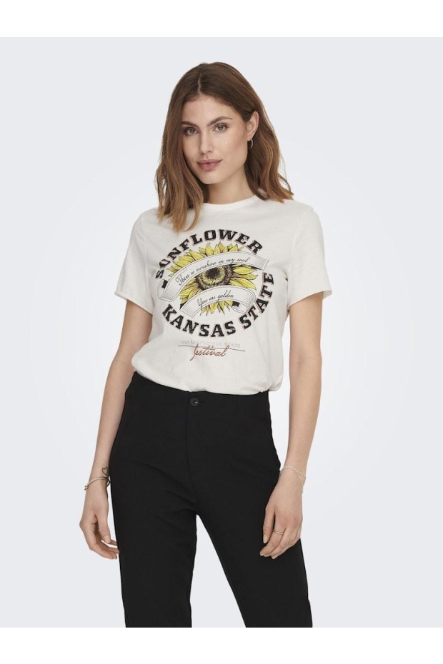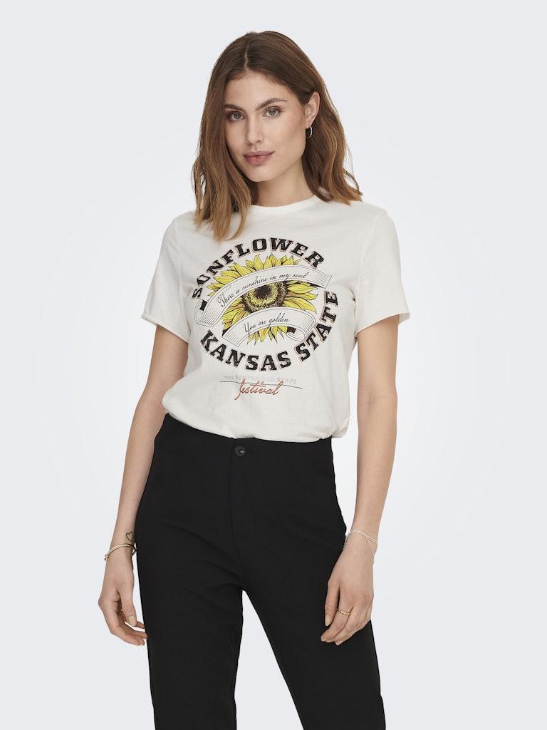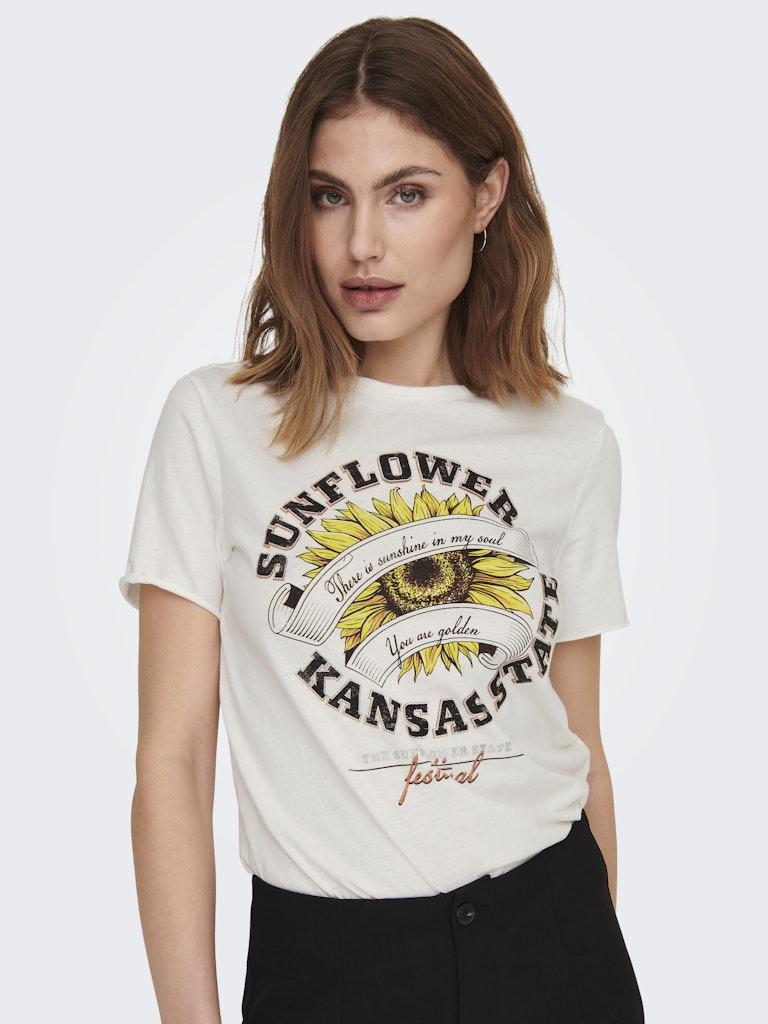 Only ONLLUCY REG S/S SUNFLOWER TOP BOX JRS Cloud Dancer Sunflower
