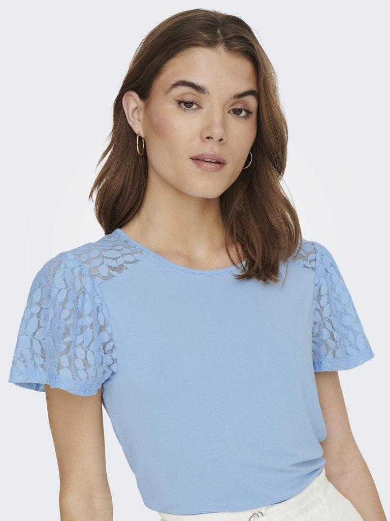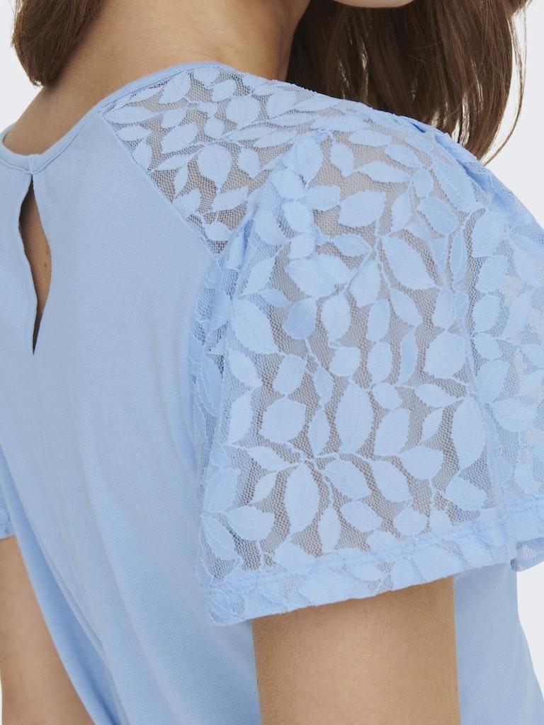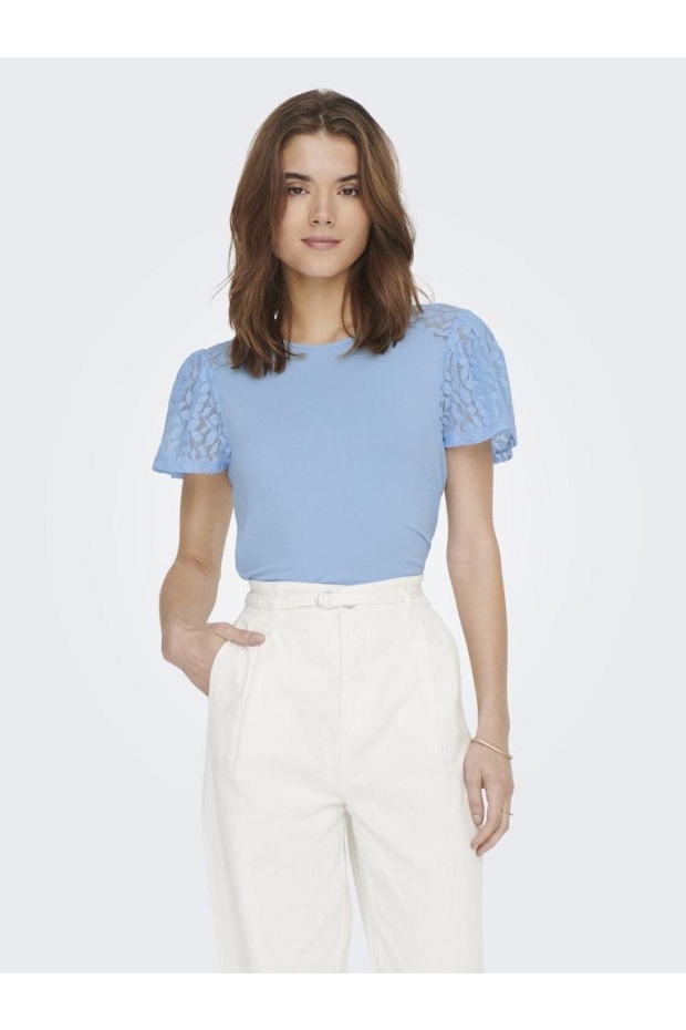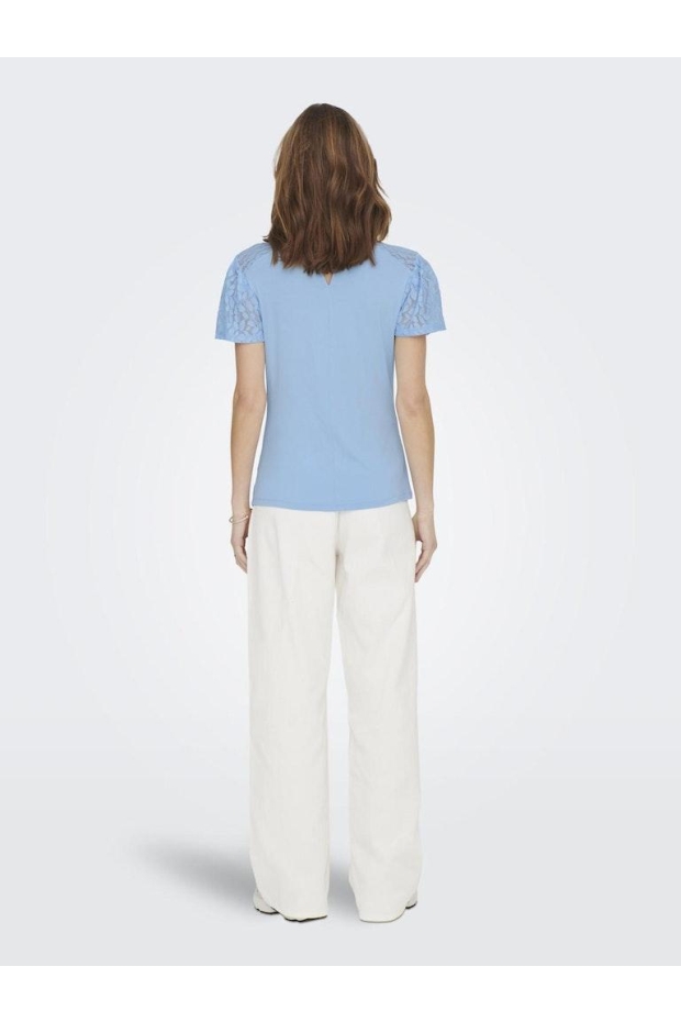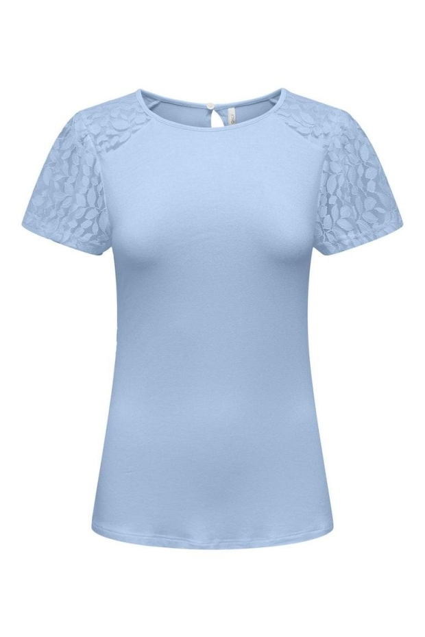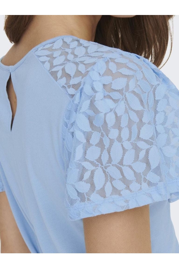Ontdek de perfecte mix van stijl en comfort met de ONLY ONLKANYE S/S LACE MIX TOP JRS. Deze prachtige top, uitgevoerd in een verfrissende lichtblauwe tint genaamd Clear Sky, is een must-have voor elke garderobe deze zomer. Het T-shirt met korte mouwen combineert moeiteloos elegantie met dagelijks comfort, waardoor het een veelzijdige keuze is voor zowel casual als chique gelegenheden.