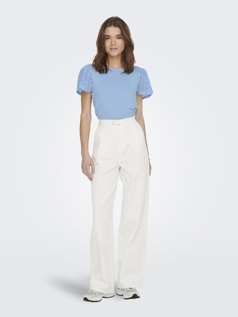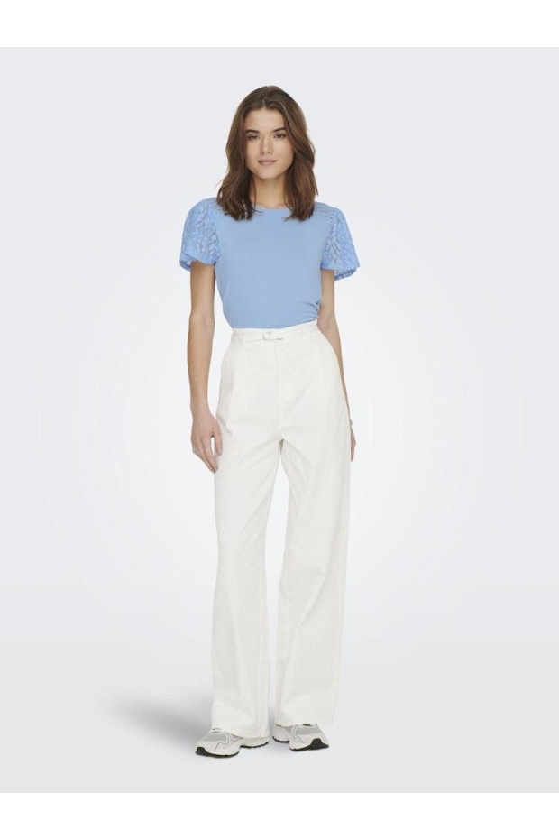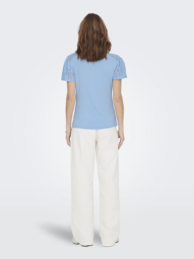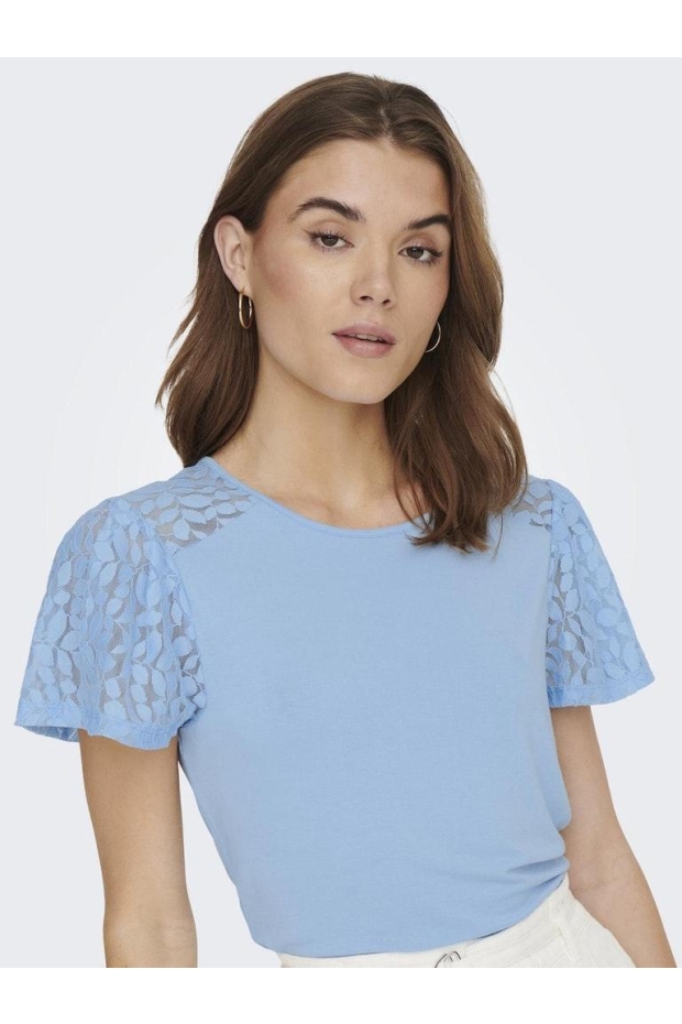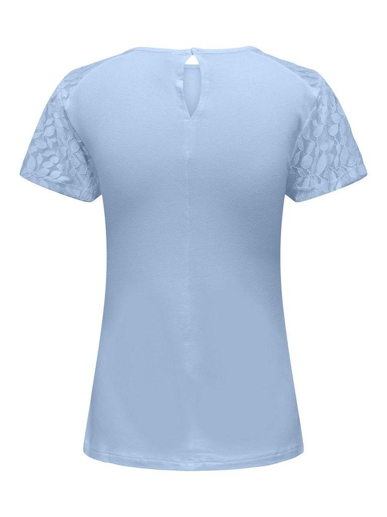 Ontdek de perfecte mix van stijl en comfort met de ONLY ONLKANYE S/S LACE MIX TOP JRS. Deze prachtige top, uitgevoerd in een verfrissende lichtblauwe tint genaamd Clear Sky, is een must-have voor elke garderobe deze zomer. Het T-shirt met korte mouwen combineert moeiteloos elegantie met dagelijks comfort, waardoor het een veelzijdige keuze is voor zowel casual als chique gelegenheden.