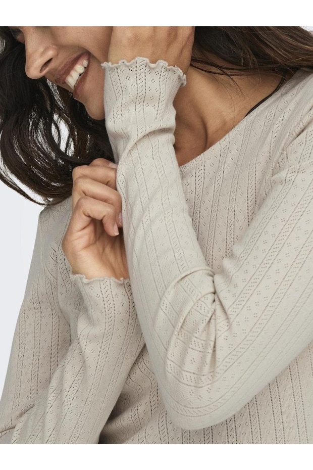 Ontdek de perfecte aanvulling op jouw wintergarderobe met de ONLY ONLCARLOTTA L/S TOP in het stijlvolle beige. Deze lange mouw T-shirt is niet alleen een tijdloze klassieker, maar ook een veelzijdig stuk dat je moeiteloos kunt combineren met al je favoriete winteritems. Voel je comfortabel en modieus, elke dag weer.