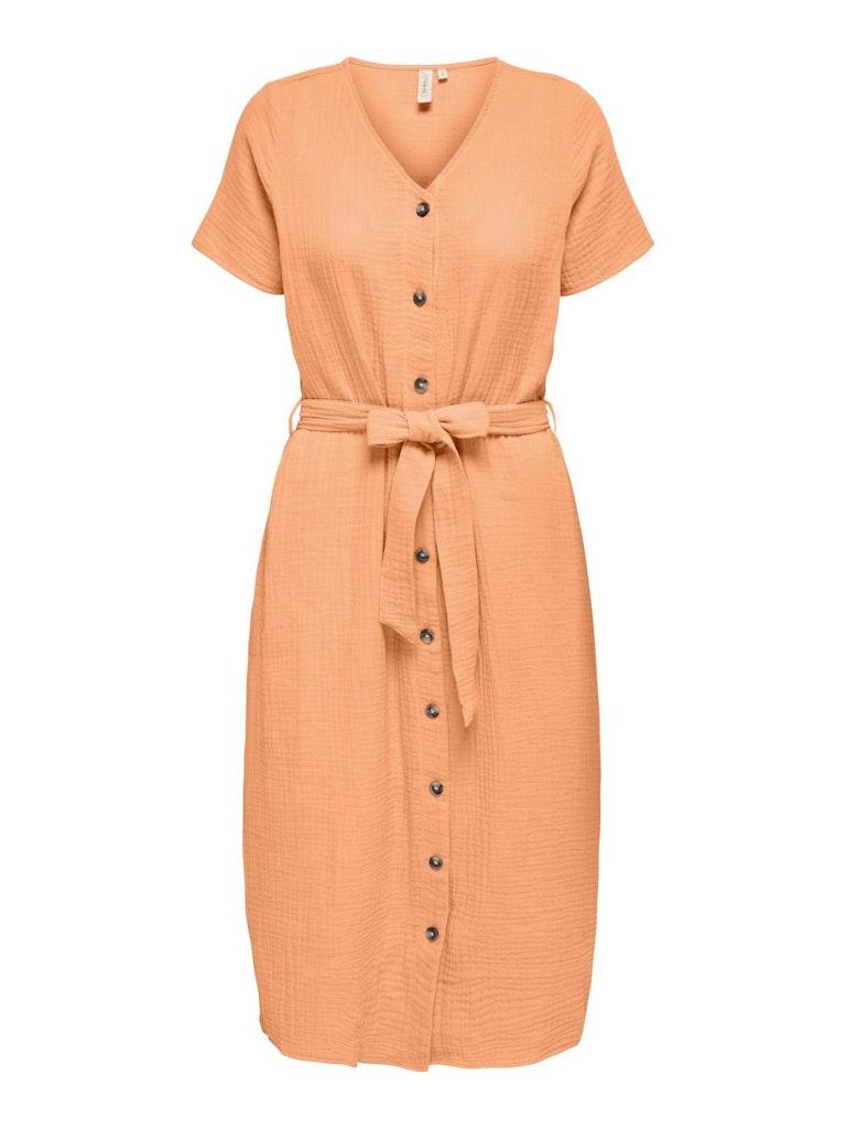 Voel je stralend in de prachtige oranje ONLTHYRA BUTTON DOWN DRESS WVN van ONLY, perfect voor elke zomerse gelegenheid. Deze lange jurk, uitgevoerd in een levendige oranje kleur, belooft comfort en stijl te combineren voor een onvergetelijke look.