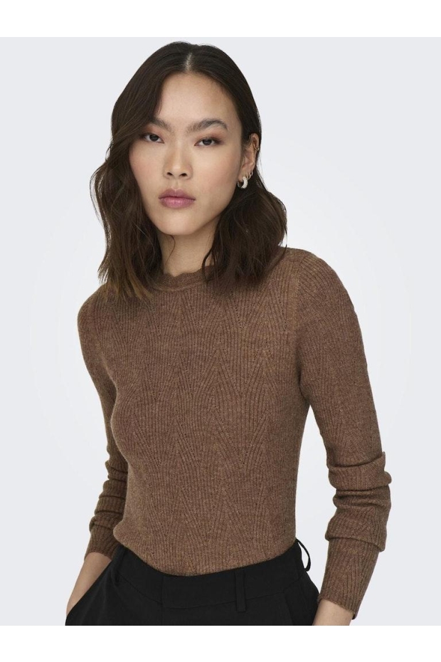 Only 15294463 ONLMAI LS STRUCT O-NECK CC KNT Friar Brown Melange
