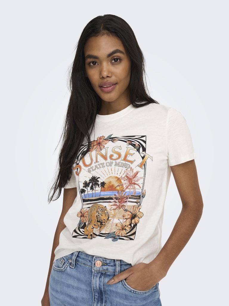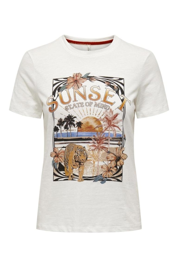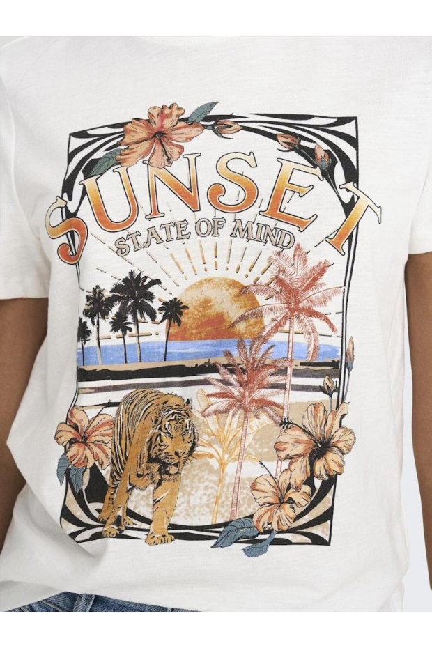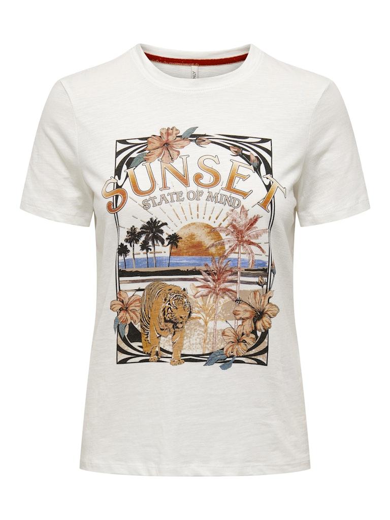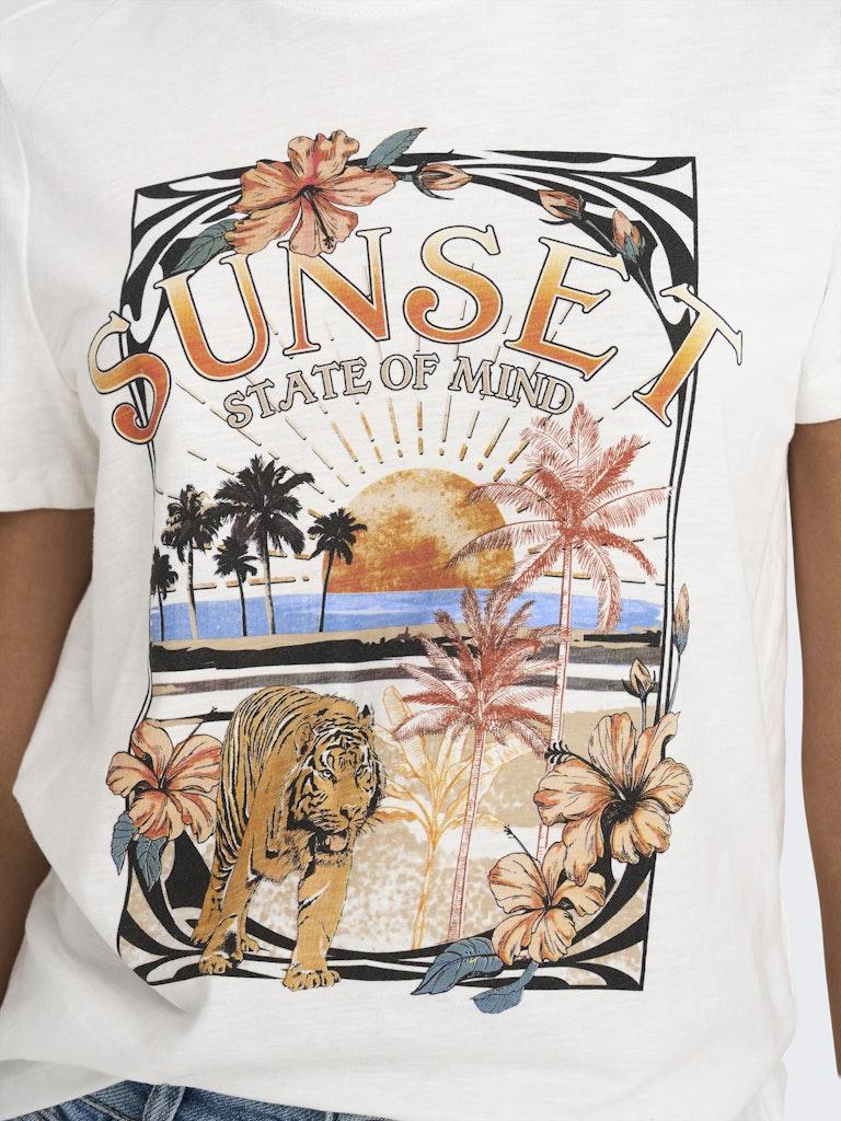 Only 15296244 ONLFELIA S/S PALM TIGER TOP BOX JRS Cloud Dancer Sunset