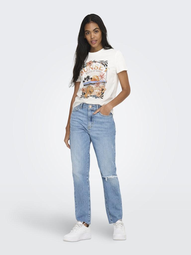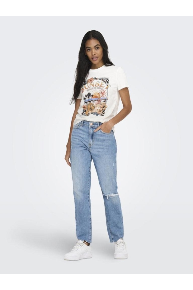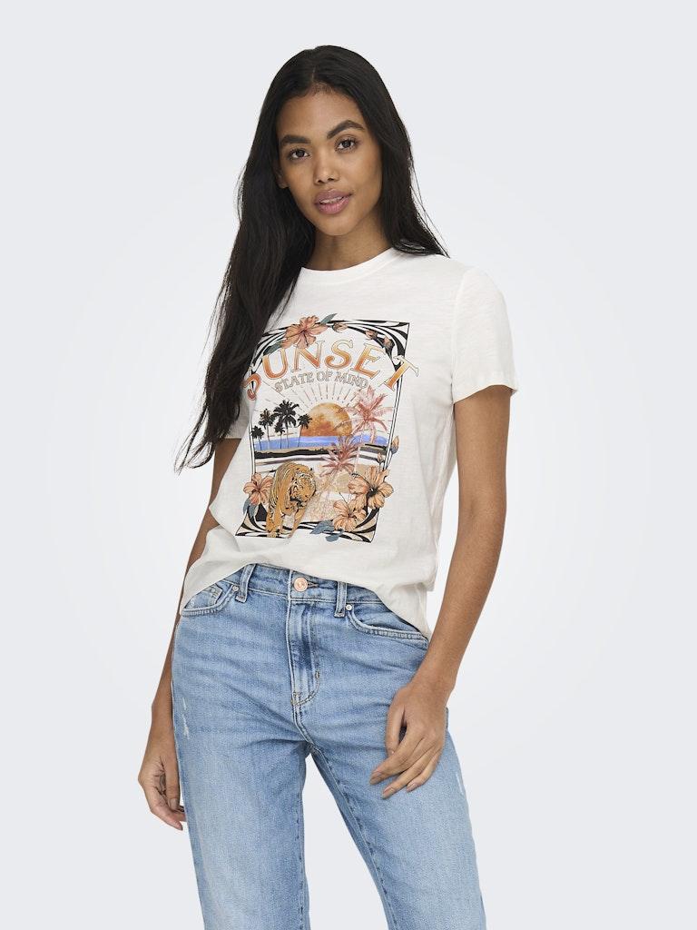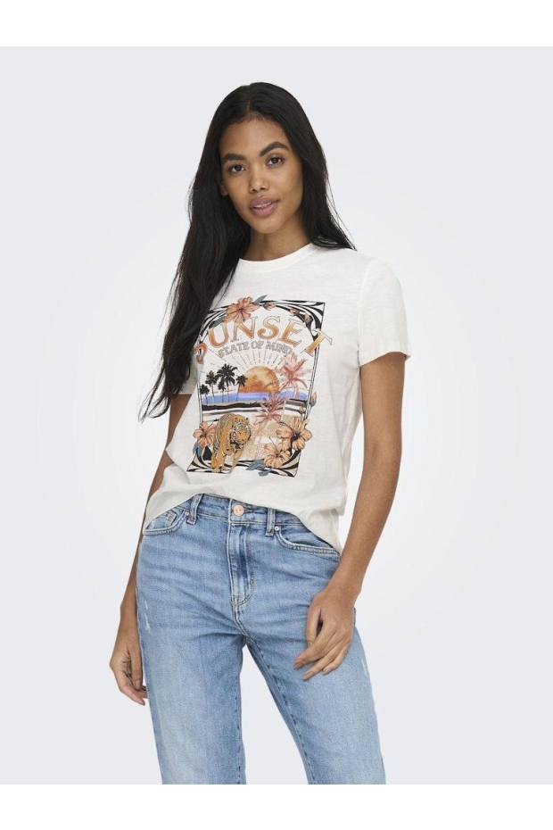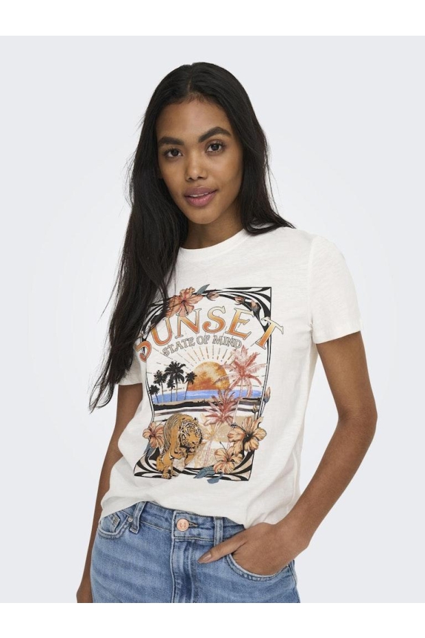 Only 15296244 ONLFELIA S/S PALM TIGER TOP BOX JRS Cloud Dancer Sunset