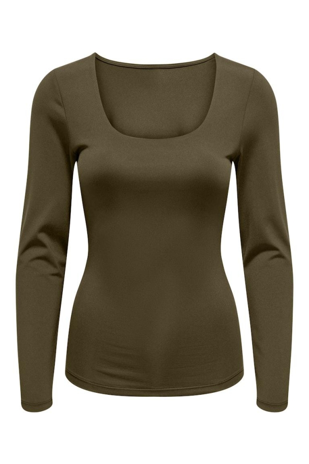 Only ONLEA L/S 2-WAY DEEP NECK TOP JRS NOOS 15302647 Dark Olive