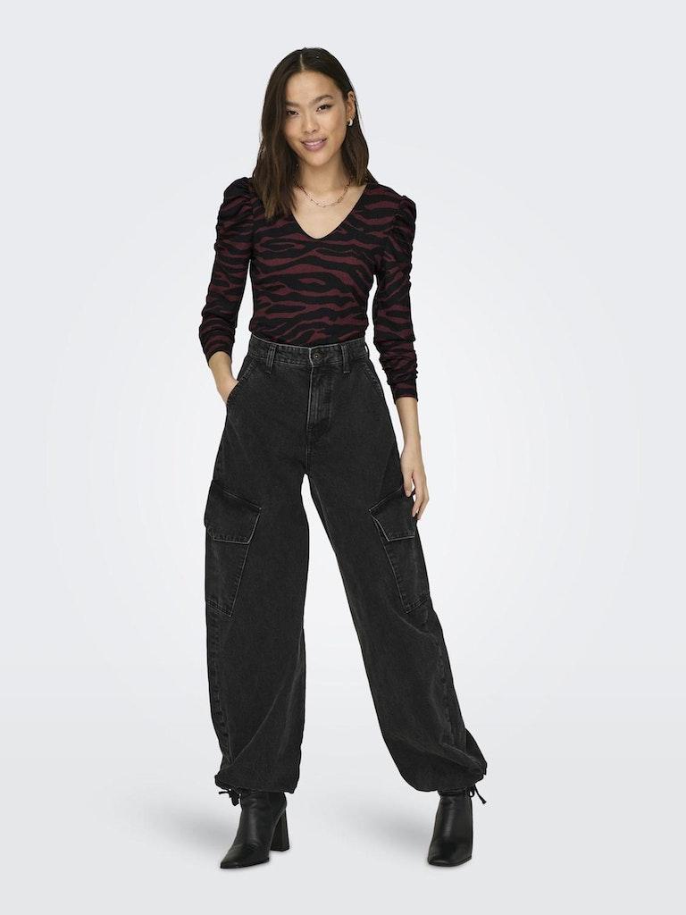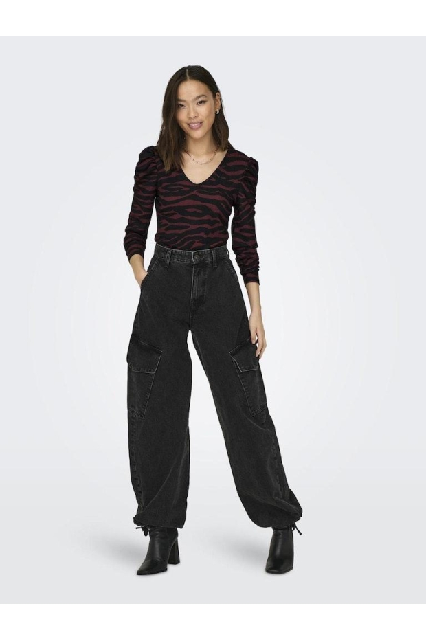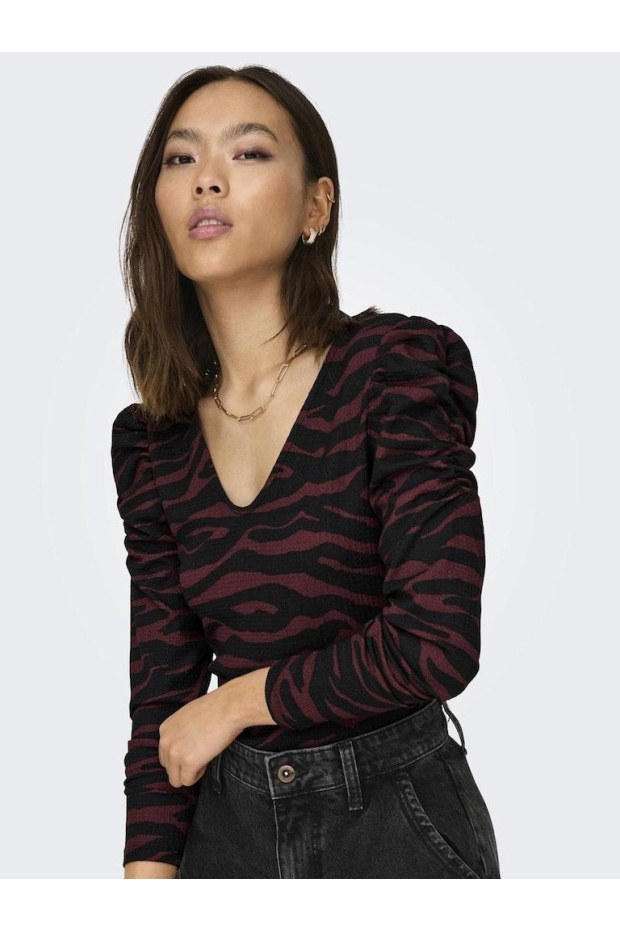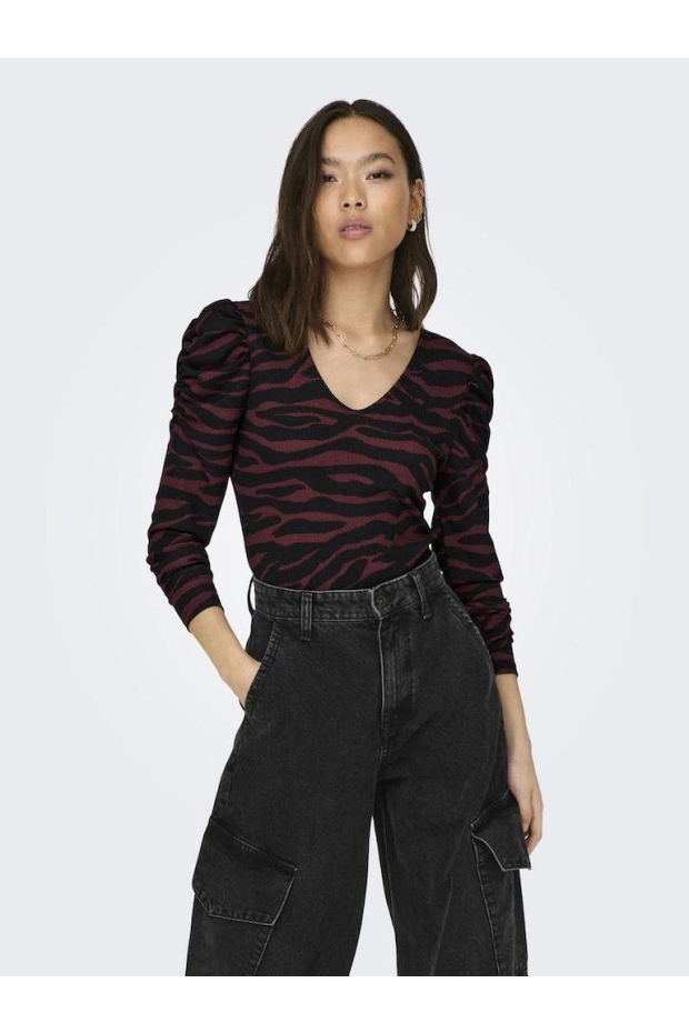 Only 15303419 ONLADA L/S TOP JRS Chocolate Truffle Posh zebra - black