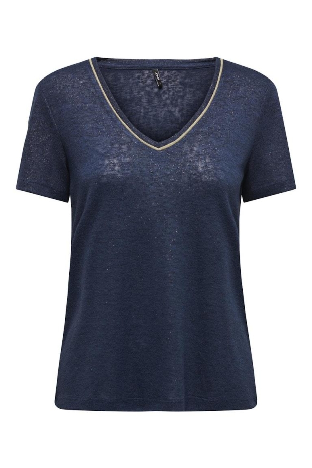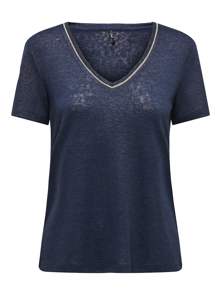 Only 15307154 ONLDORIT S/S V-NECK SHINE TOP JRS Dress Blues Frosted almond
