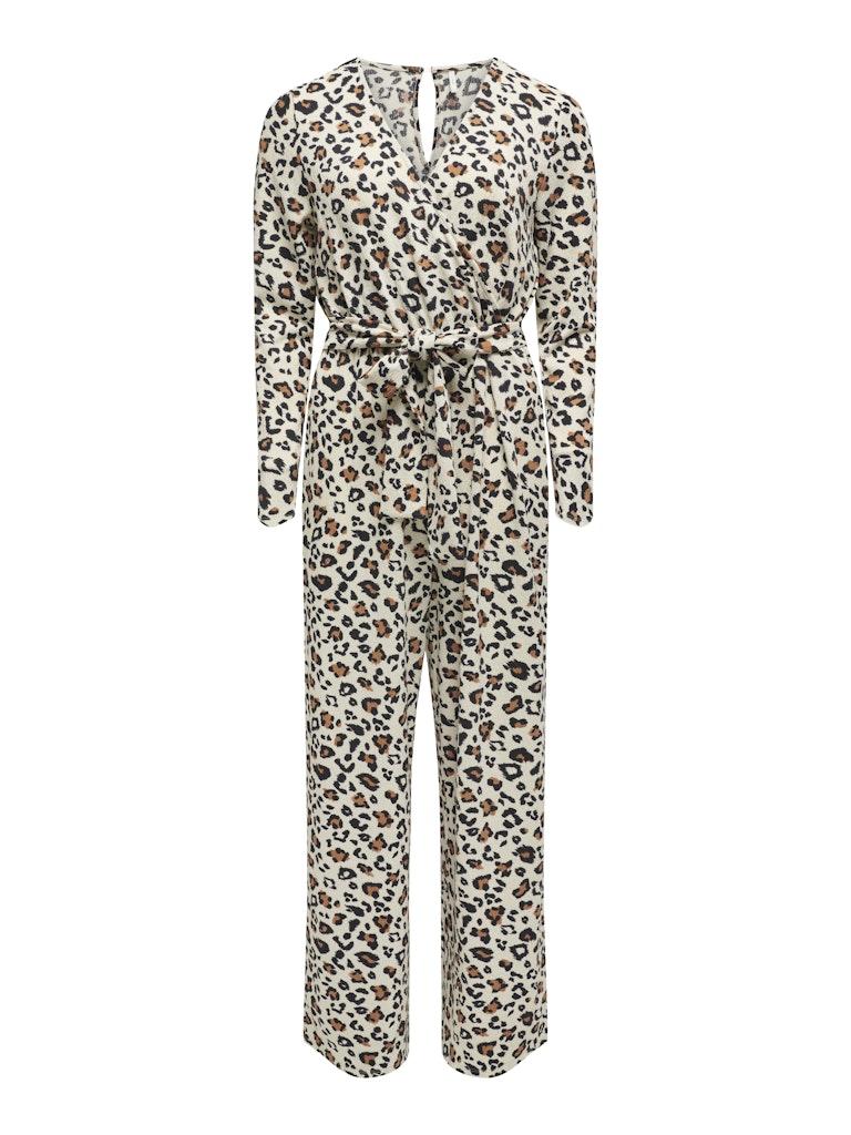 Only 15307419 ONLPAULINE S/S WRAP JUMPSUIT CS JRS Silver Birch Leo