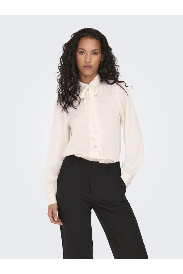 Verrijk je garderobe met de tijdloze elegantie van de ONLY ONLKATHRINE LS TIE JEWLERY BUTTONS WVN blouse. Deze prachtige off white blouse, ook bekend als 'Cloud Dancer', is een must-have voor elke modebewuste vrouw. Met zijn verfijnde uitstraling en veelzijdige kleur is het de perfecte keuze voor zowel formele als casual gelegenheden.