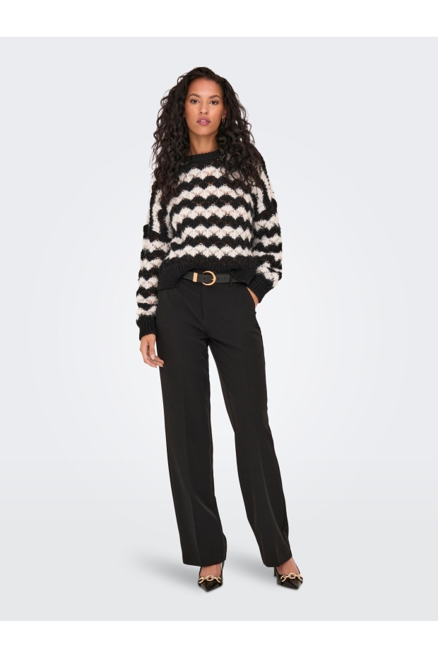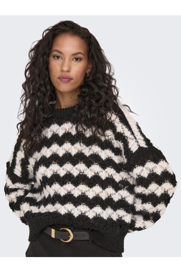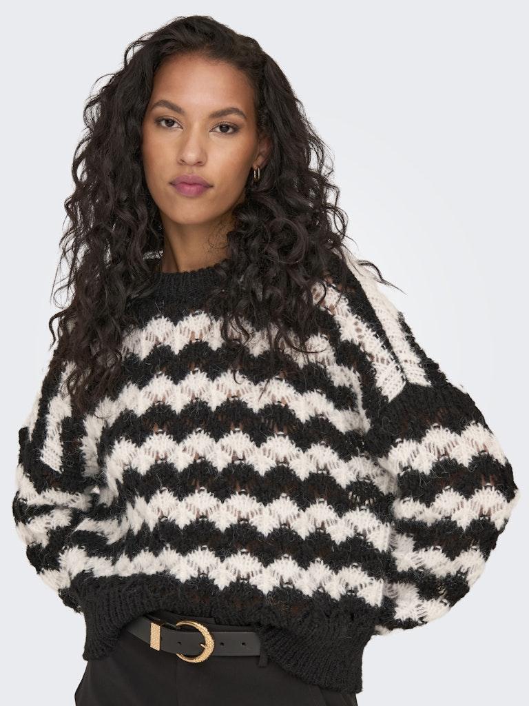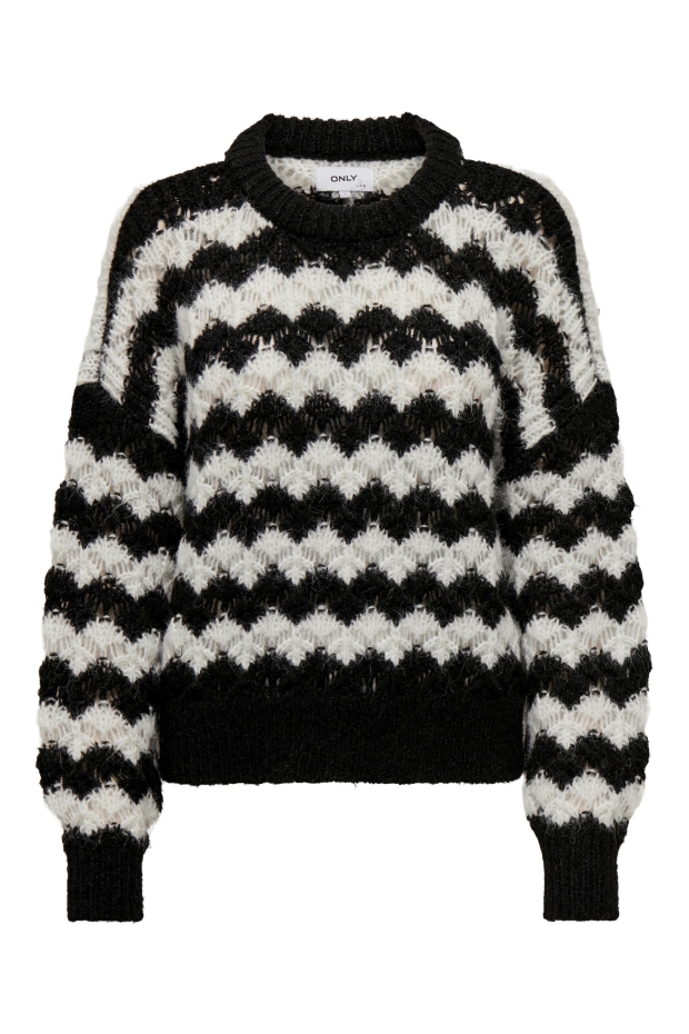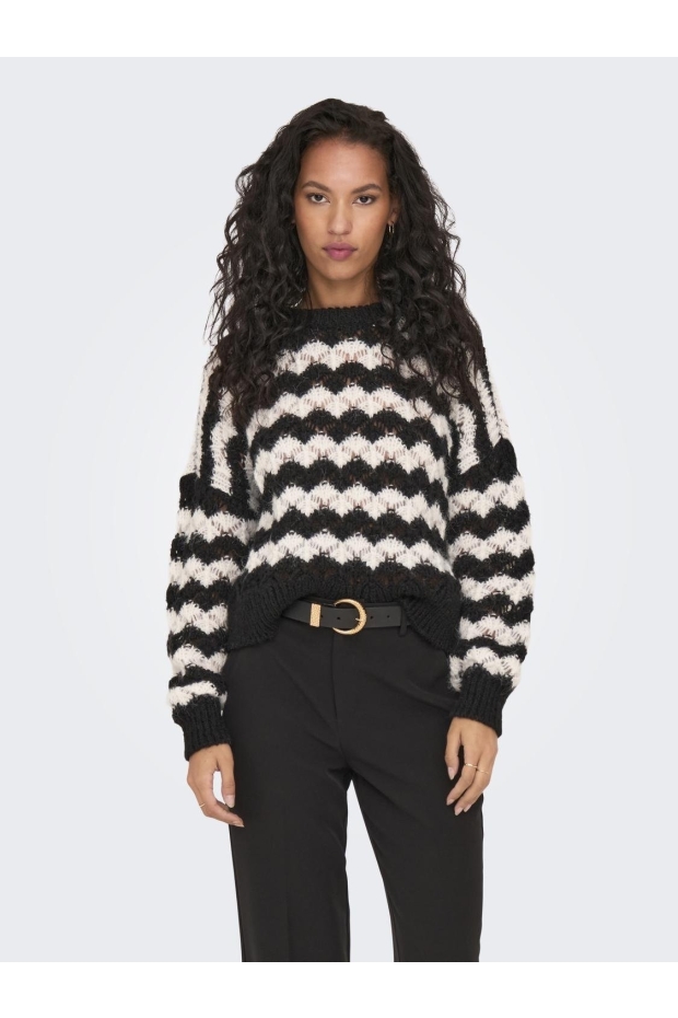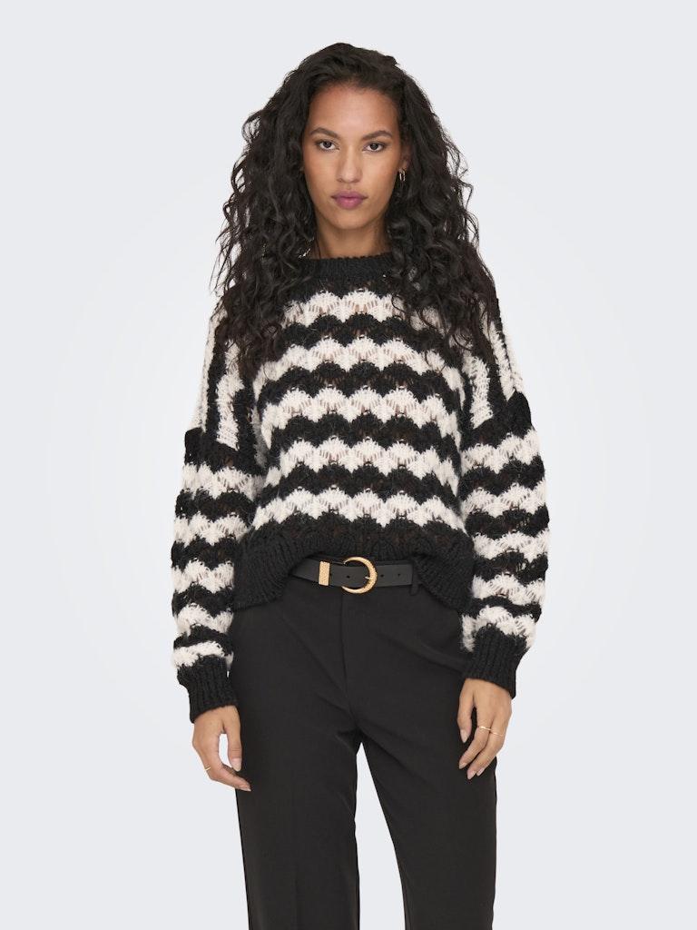 Only ONLLULU LIFE LS STRIPE O-NECK KNT 15309291 Black CLOUD DANCER