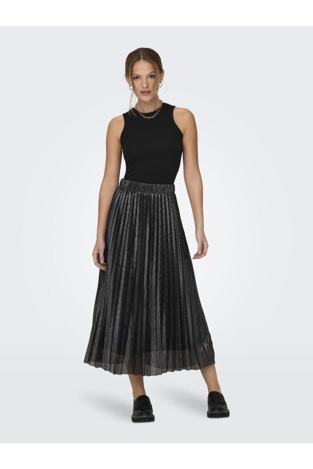 Only ONLSHOW SHINE PLISSE SKIRT JRS 15310184 Black Gun metal foil