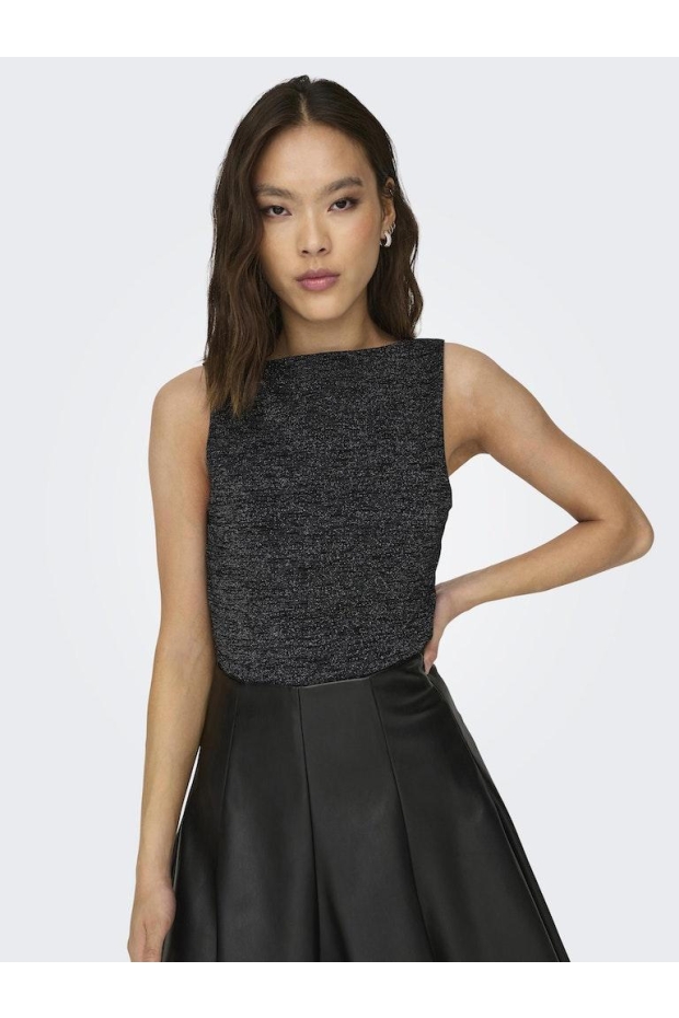 Only ONLROMA S/L 2-WAYS SHINE TOP JRS 15311741 Black Silver glitter