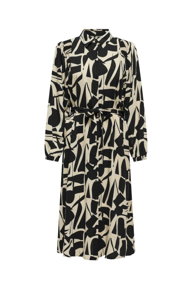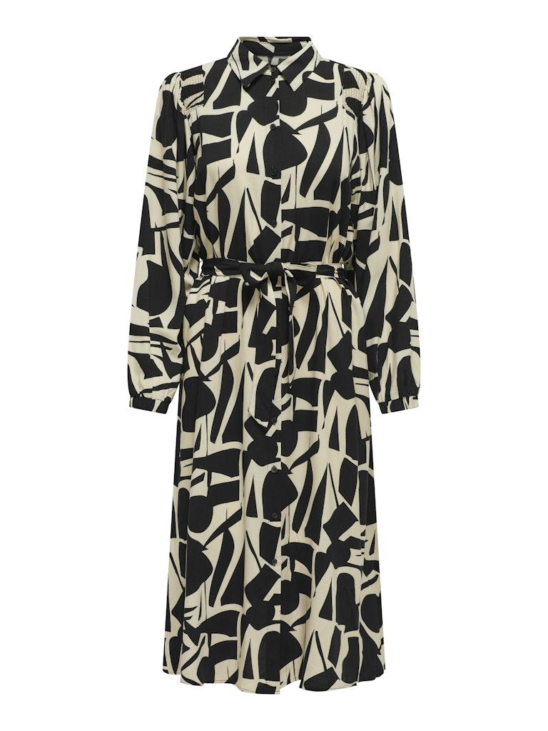 Only ONLHALIA LIFE L/S BELT SMOCK DRESS PTM 15315986 Black City graphic