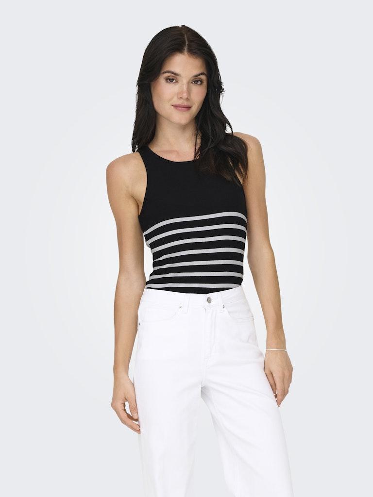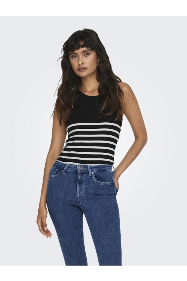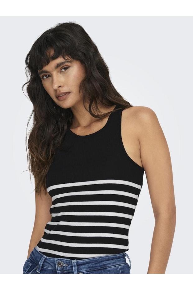 Only ONLKENYA RIB STRIPE TANK TOP JRS NOOS 15318407 Black Bright white