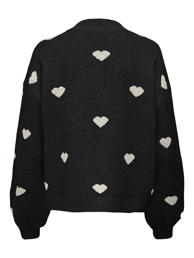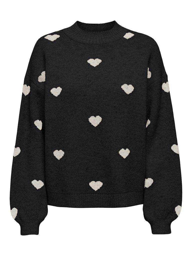 Only ONLSIMONE HEARTS LS PULLOVER EX KNT 15318718 Black W. Beige Hearts