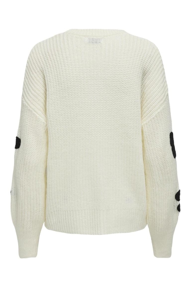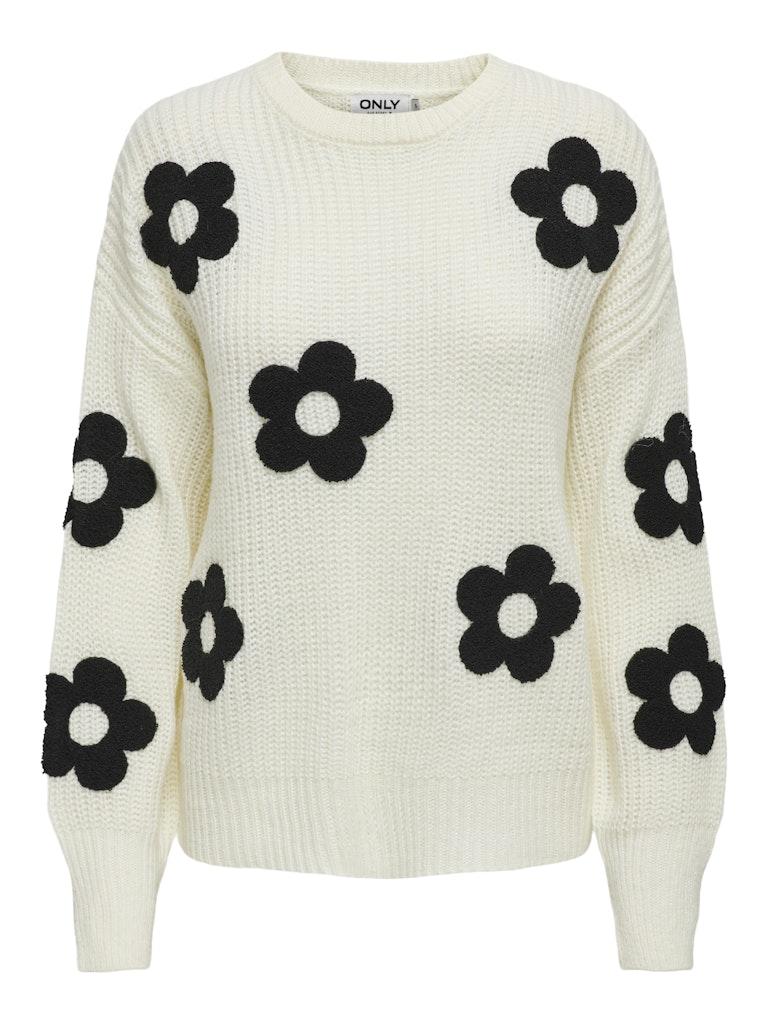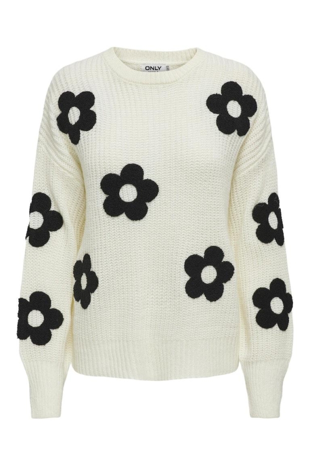 Only ONLBONNIE LS FLOWER O-NECK EX KNT 15320801 Cloud Dancer Black Flower Emb
