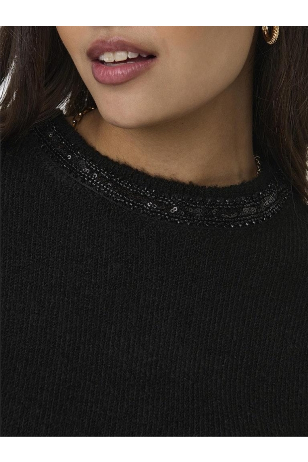 Only ONLAVI LS EMBELLISH O-NECK EX KNT 15323962 Black Dtm Embellishment