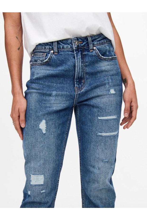 Ontdek de perfecte mix van stijl en comfort met de ONLY ONLEMILY HW ST ANK DEST DNM Mom Jeans. Deze trendy jeans met een medium jeans wassing en een unieke destroyed look is een must-have voor elke garderobe. Voel je zelfverzekerd en modieus met deze veelzijdige aanvulling op je kledingcollectie.