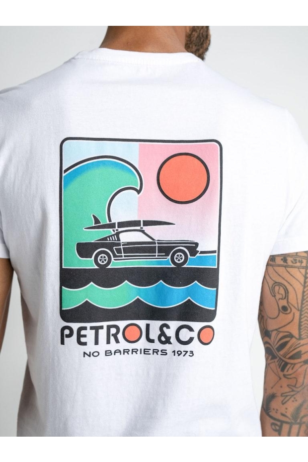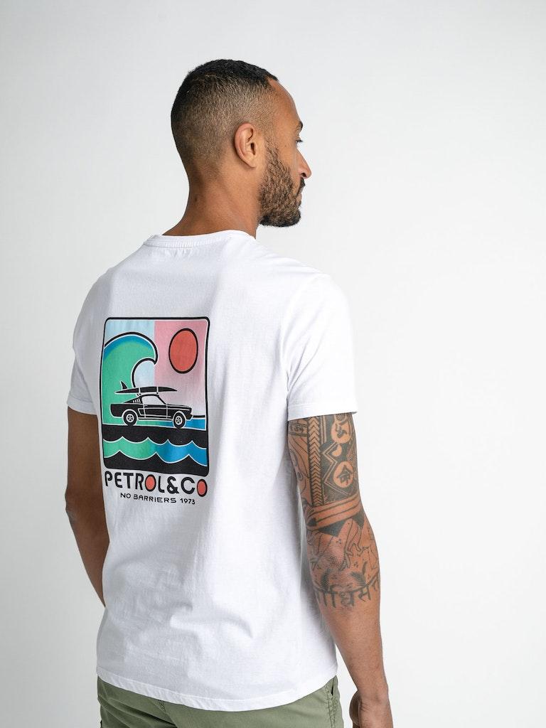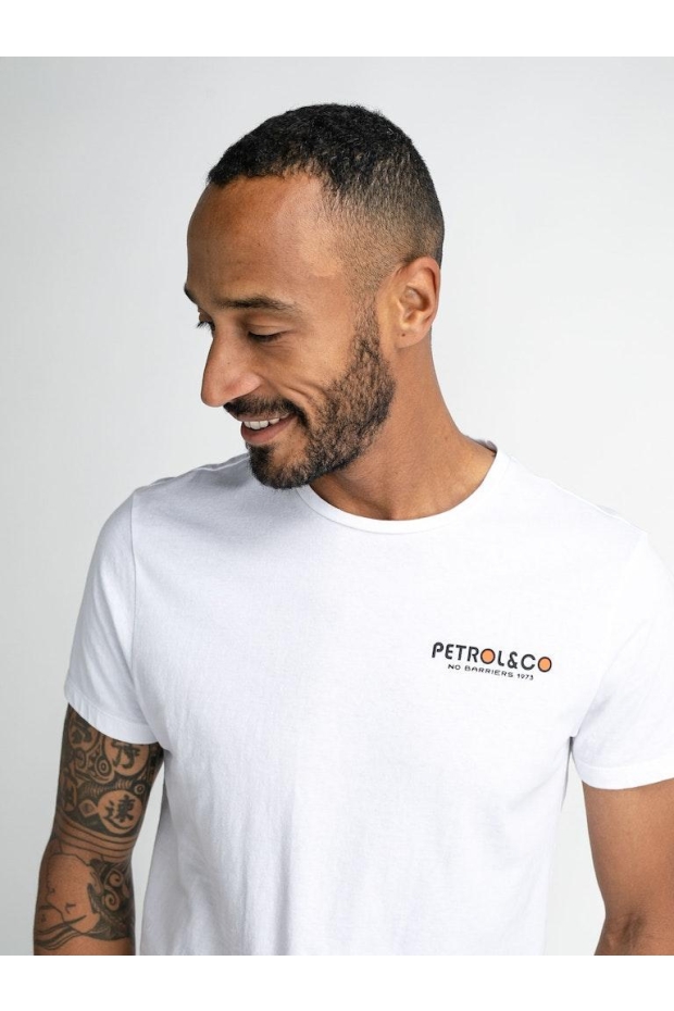 Maak kennis met de perfecte aanvulling op jouw zomergarderobe: het PETROL Print T-shirt voor heren in stralend wit. Dit stijlvolle T-shirt, ontworpen om jouw zomerse look compleet te maken, biedt comfort en stijl in één.